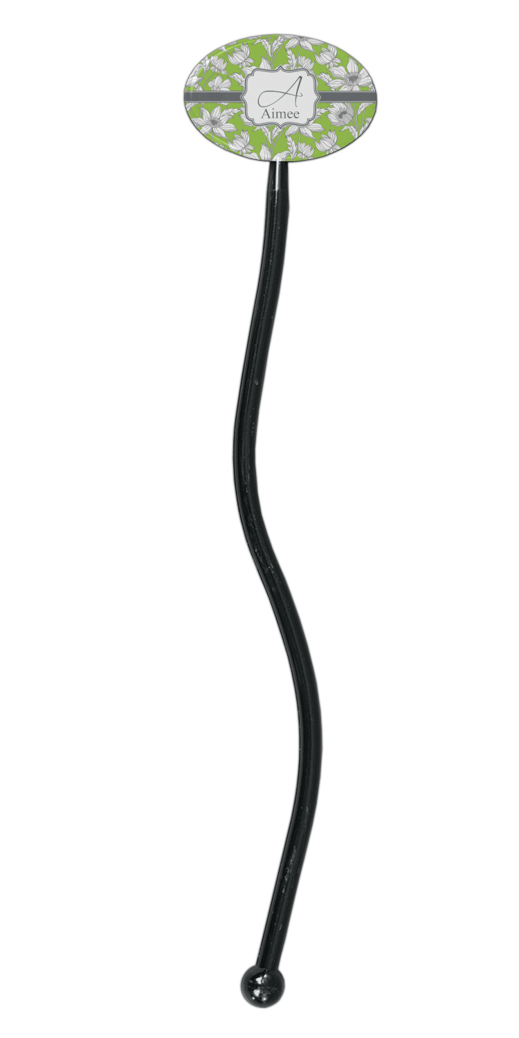 Daisy / Daisies Designs for 7" Oval Plastic Stir Sticks - Black - Single-Sided
