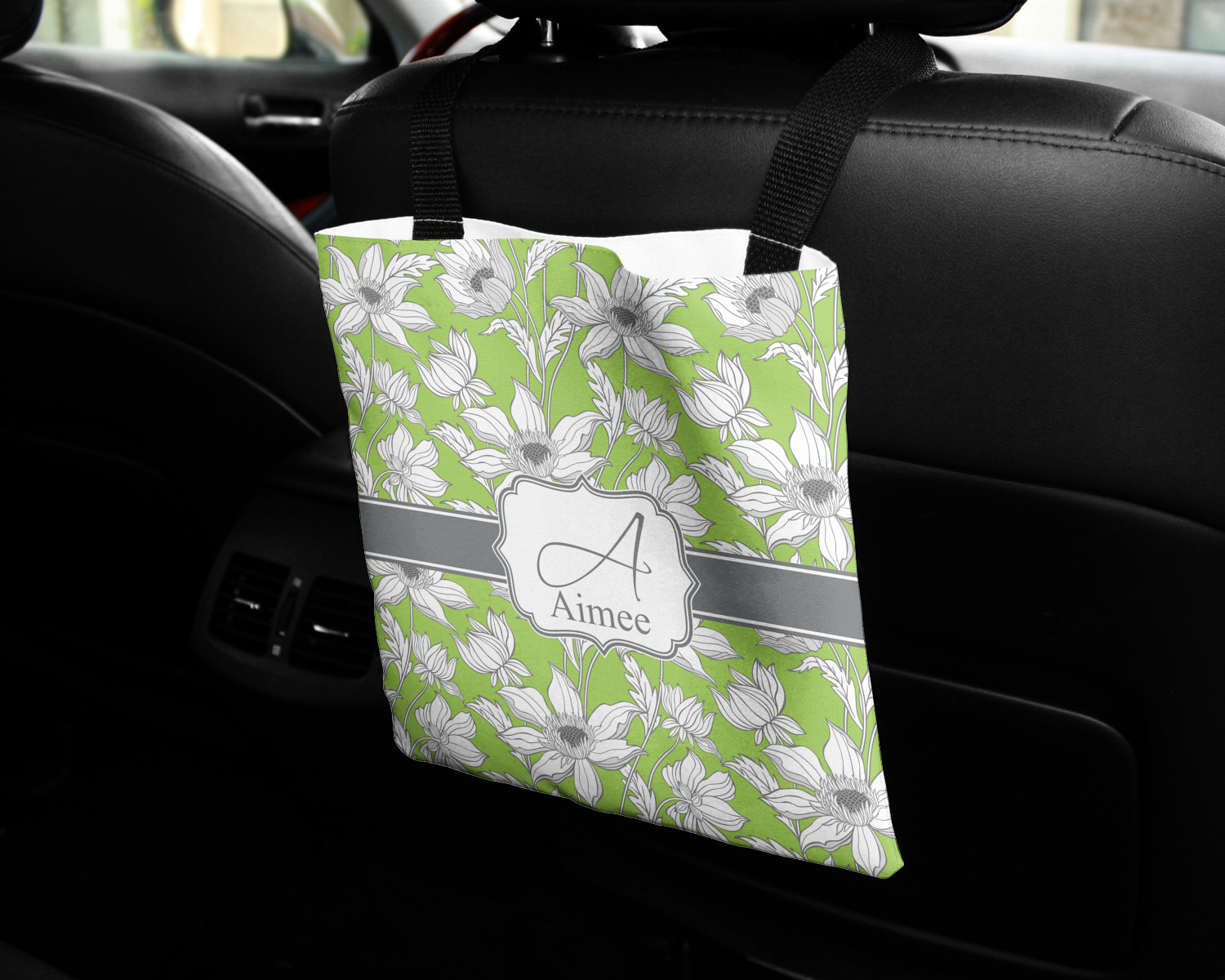 These car back seat organizers are sturdy tote-like bags, fabricated from a robust polyester, and features a single handle on the back side. The strap features an attachable velcro for easy attachment to headrests, grocery carts, car seats, and more. Simply undo the velcro, loop the strap around the headrest, reattach the velcro, and let the organizer hang from the front seat. These car organizers are the perfect means of increasing your backseat's legroom, while storing multiple items in one place for better accessibility. Each car back seat organizer measures at 10 by 10 inches, and features your personalized design printed across its front and back.