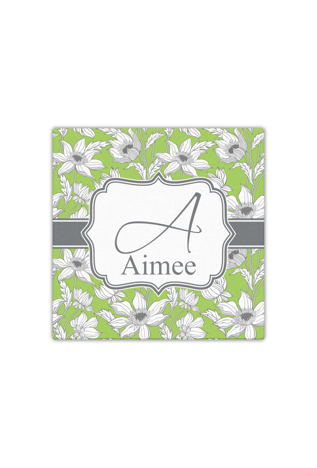 Sketches of long stem white daisies outlined in gray spring to life up against a green background. A white trimmed gray ribbon coordinates with a decorative label to showcase the personalization of your choice.