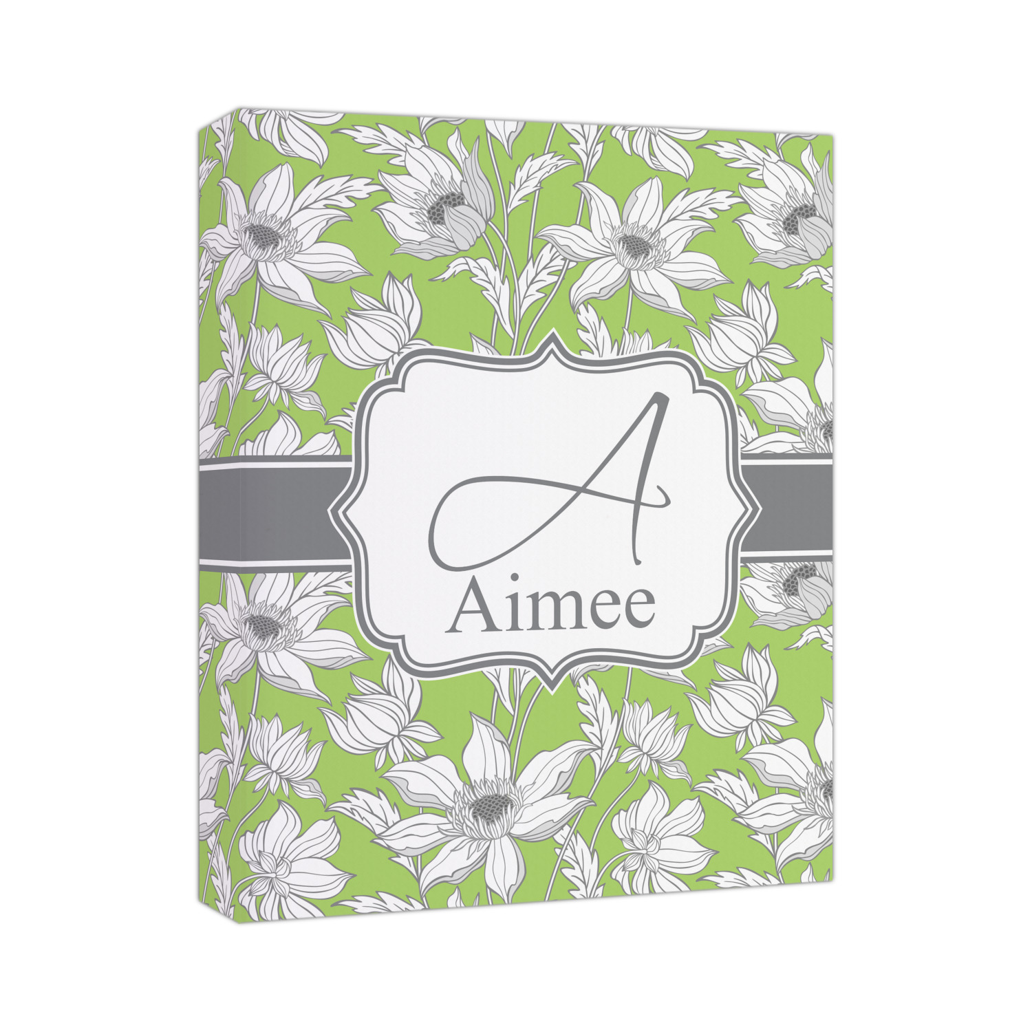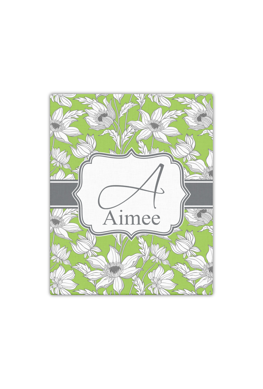 Sketches of long stem white daisies outlined in gray spring to life up against a green background. A white trimmed gray ribbon coordinates with a decorative label to showcase the personalization of your choice.