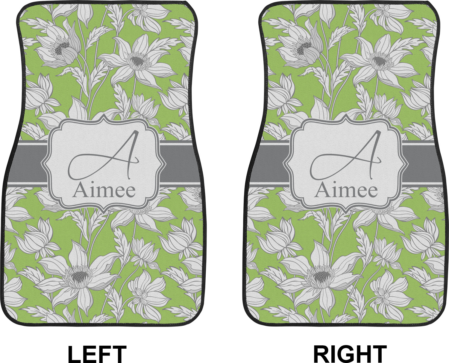 We craft our auto floor mats mats from polyester, apply a black finish to the edges, and lined at the bottom to prevent slippage. These mats protect your floors from grass, mud, and any accidental spills. We display your personalized design on the front face of each mat. The sizes of these car floor liners are standardized to provide a versatile fit for all vehicles. The front rows car mats measure at 17 by 26.5 inches, while the back rows measure at 17 by 13 inches. We sell three packages of car floor mats. You can purchase a pair of front row car mats, a pair of back row car mats, or a set of front row and back row car mats. To make an informed purchase, we recommend measuring the surface area of your car floors.