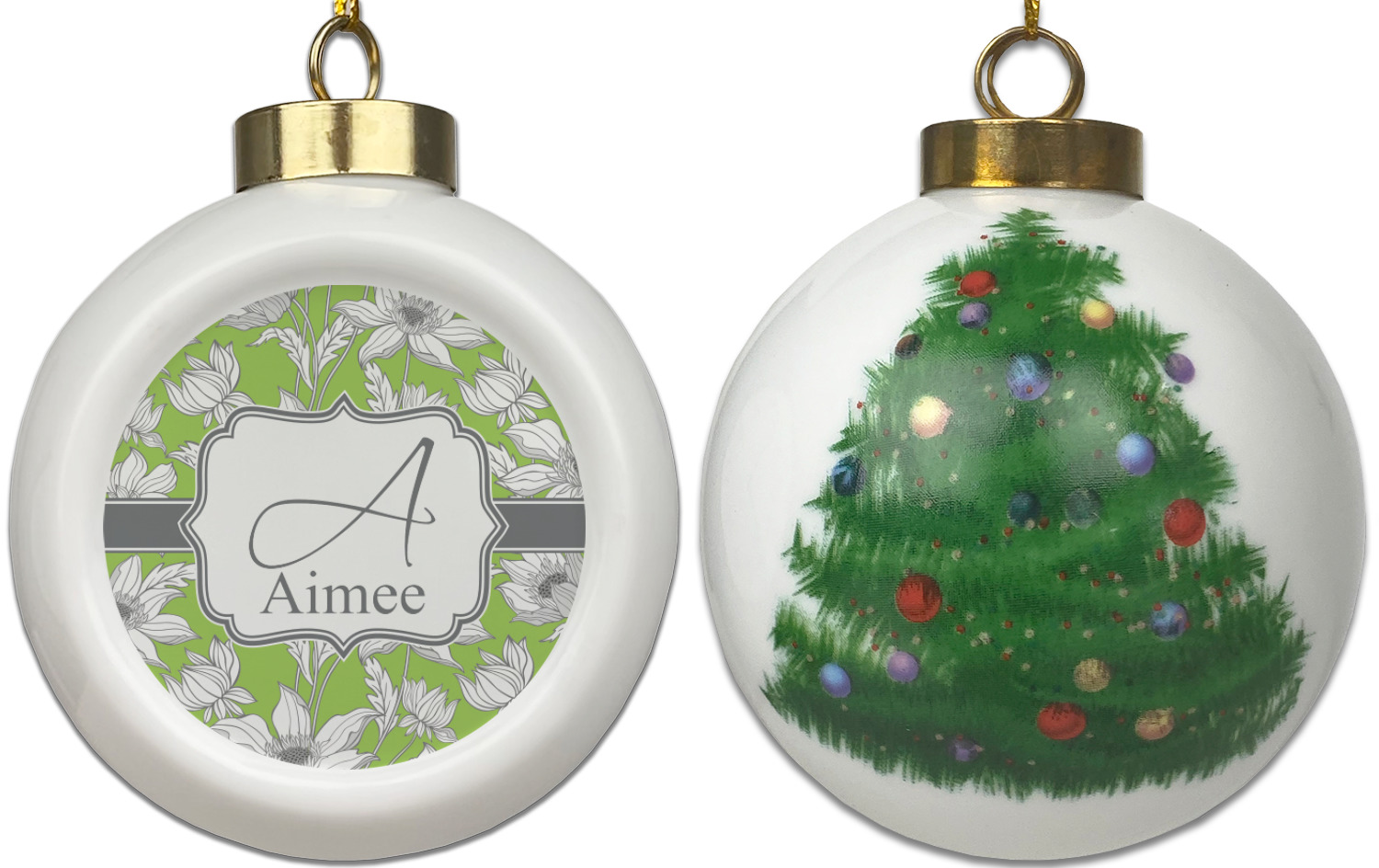 Our Christmas ornaments are a unique ceramic ball shape with a twist as it has a flat face to display your custom design! Select from one of our two design types - Christmas Tree or Poinsettia Garland - to adorn the curved back of your personal design. Each ornament measures 3H x 2.5W x 2D accompanied with a gold string accent for finishing touches to hang on your beautiful Christmas tree!