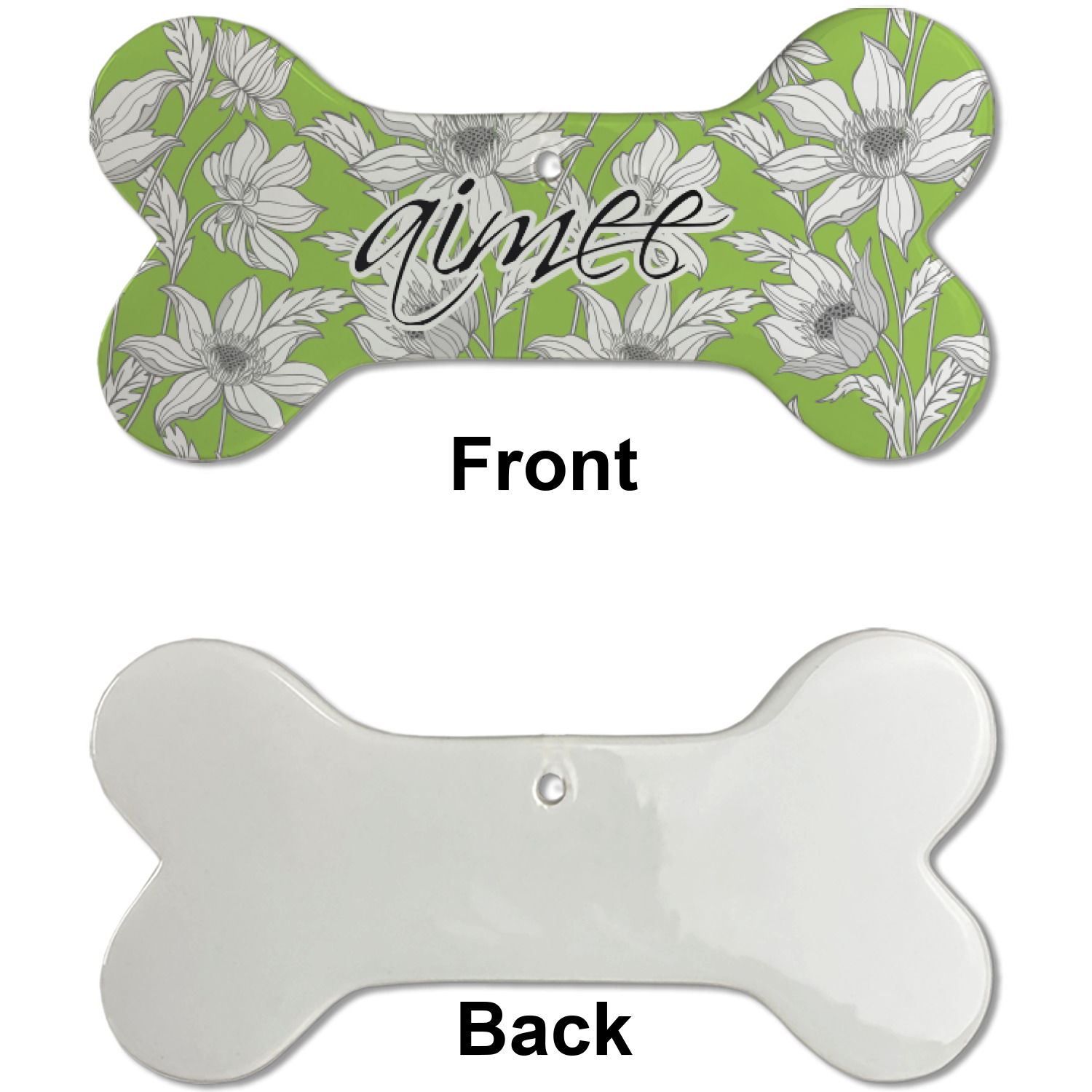 Our dog Christmas ornaments are a ceramic material with a bone-shaped structure hung horizontally. We offer two printing styles to personalize your furry friend's ornament! Choose a one-sided printing, perfect for wall decor, memorial accessory, or doghouse nameplate! Create a double-sided ornament perfect for adorning the Christmas tree. Each dog bone ornament is approximately 4.75" x 2.25" and is printed here in the USA.