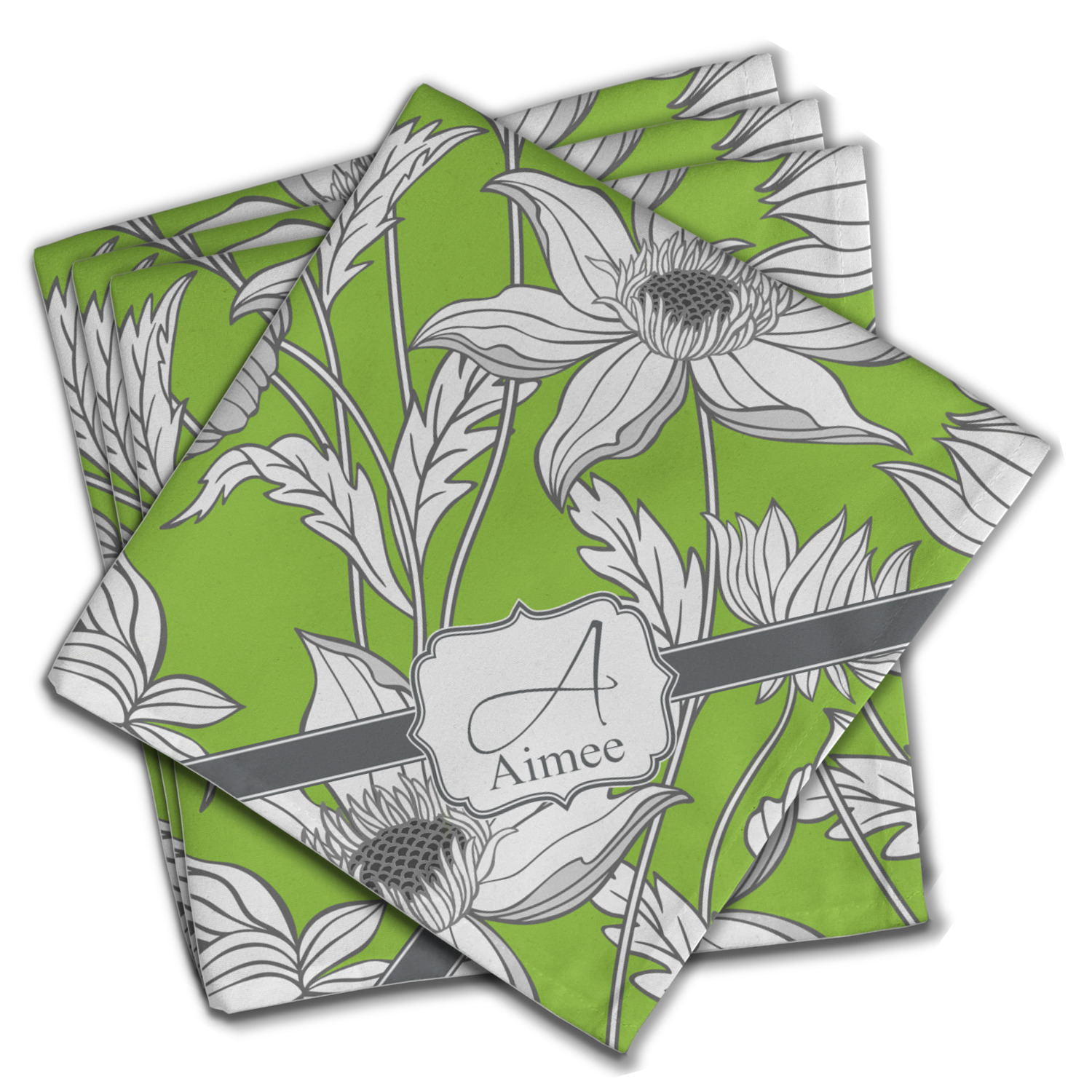 Each customizable cloth napkin is a polyester material guaranteed for long-term use. Since our napkins are cloth, it serves as a great reusable and eco-friendly dining decor. We sell personalized napkins individually or as a set of 4! Print your own unique design on all four napkins, or create four individual designs for each napkin! We offer two different napkin sizes - Cocktail napkins (approx. 10 x 10) and Dinner napkins (approx. 20 x 20). We print your design on one side, perfect for displaying your custom designed lunch napkins in any fold or table setting!
