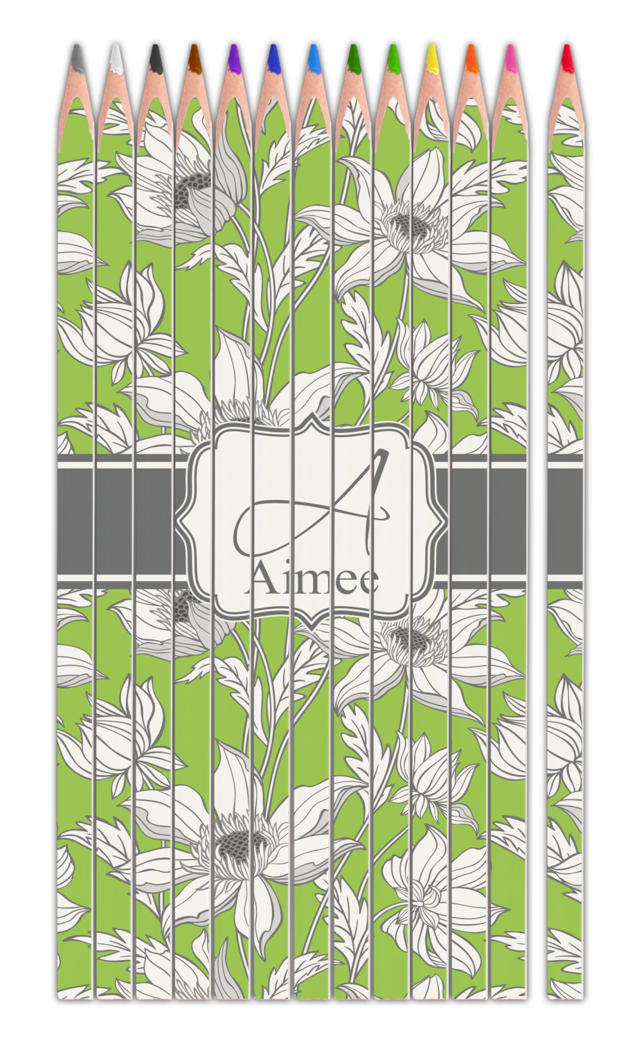 Sketches of long stem white daisies outlined in gray spring to life up against a green background. A white trimmed gray ribbon coordinates with a decorative label to showcase the personalization of your choice.