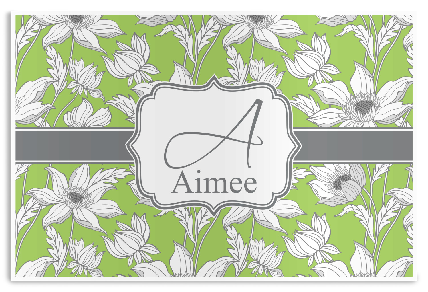Sketches of long stem white daisies outlined in gray spring to life up against a green background. A white trimmed gray ribbon coordinates with a decorative label to showcase the personalization of your choice.
