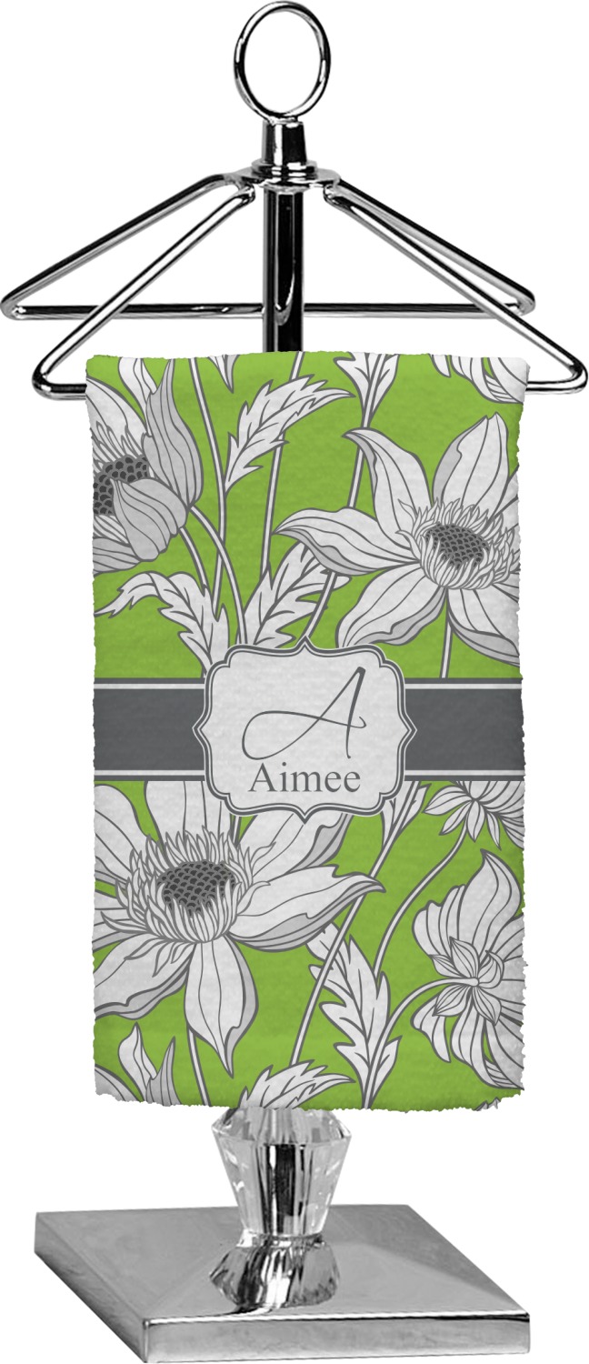 Sketches of long stem white daisies outlined in gray spring to life up against a green background. A white trimmed gray ribbon coordinates with a decorative label to showcase the personalization of your choice.