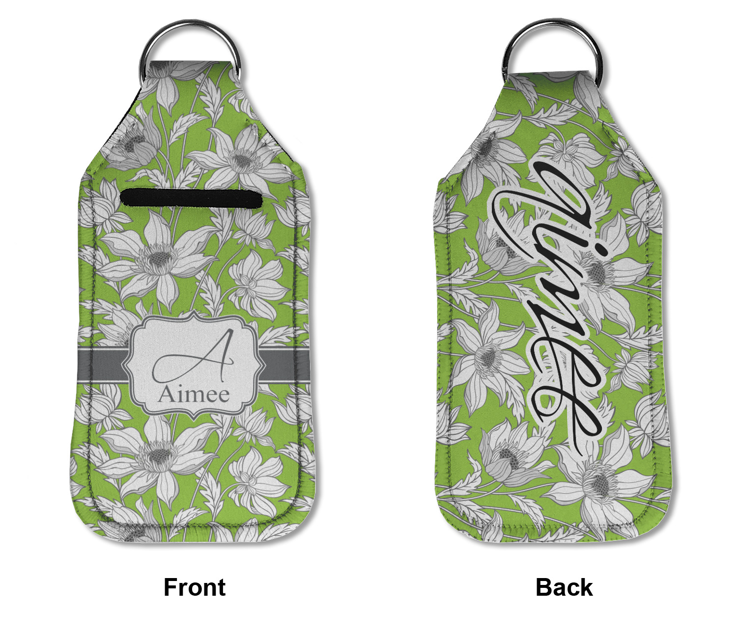 Each hand sanitizer holder comes with its own empty travel-sized, refillable hand sanitizer sure to fit snug in your customized sanitizer case! Our hand sanitizer cases are a durable, yet soft neoprene material sure to last any daily activities or travel agenda. Customize and personalize a hand sanitizer bottle holder with one of our two sizes - small (4.25" x 2.25") or large (5.5" x 2.5"). Each travel sanitizer holder comes with a keyring for attachment on bags, keys, or more!