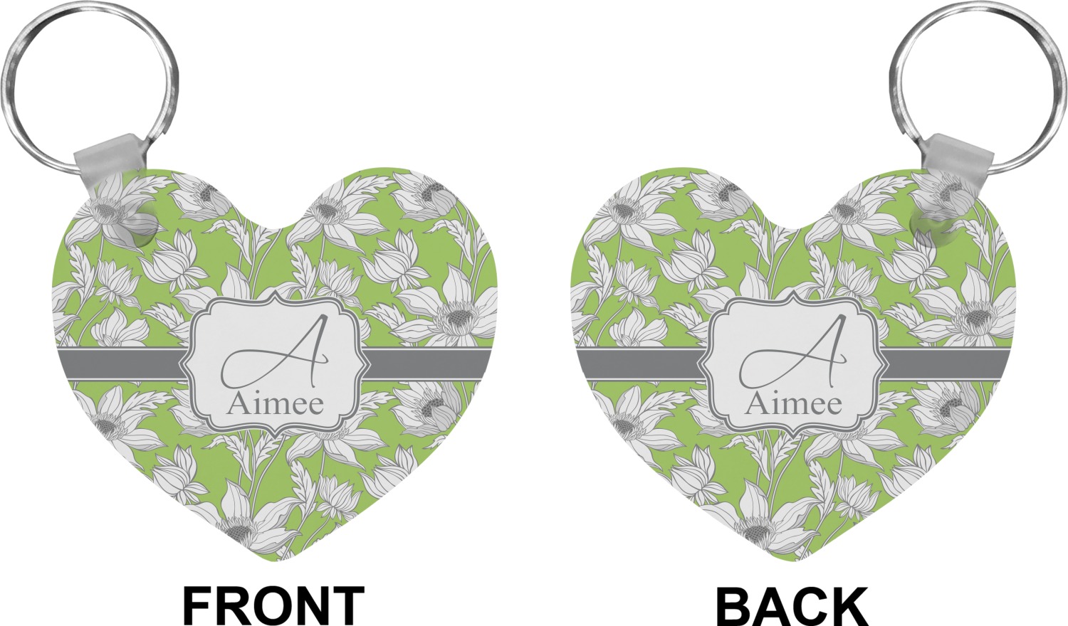 Our personalized keychains attach to the included metal, split key ring with a plastic, removable snap. Since a metal ring is included with your purchase, you have the liberty to keep your keys together on the ring, with or without your unique keychain. We offer this keychain in three different shapes: circle, heart, or diamond. We print your personalized design(s) on both sides of the key chain, and the surface has a glossy, reflective finish that only emphasizes your design. Each keychain is approximately 2.25 by 2.25 inches.