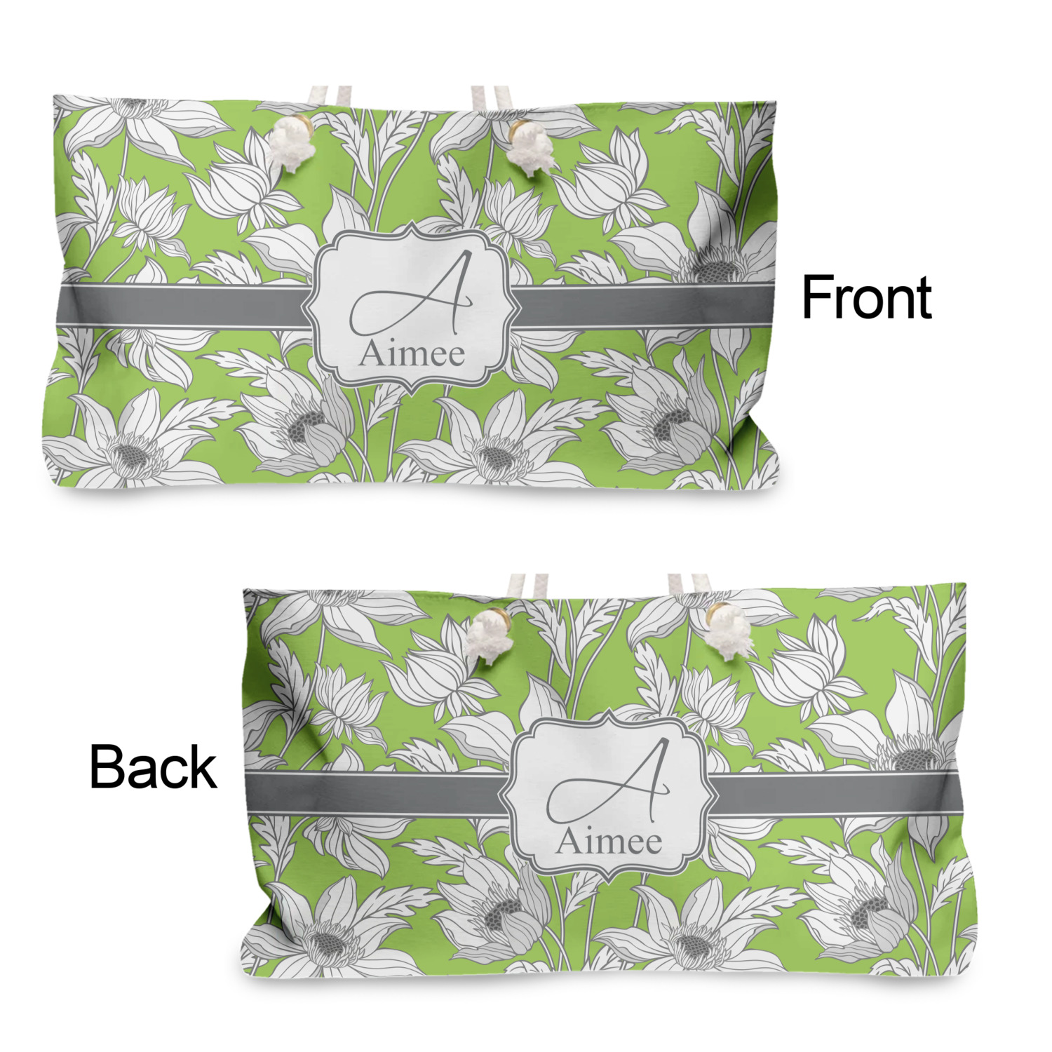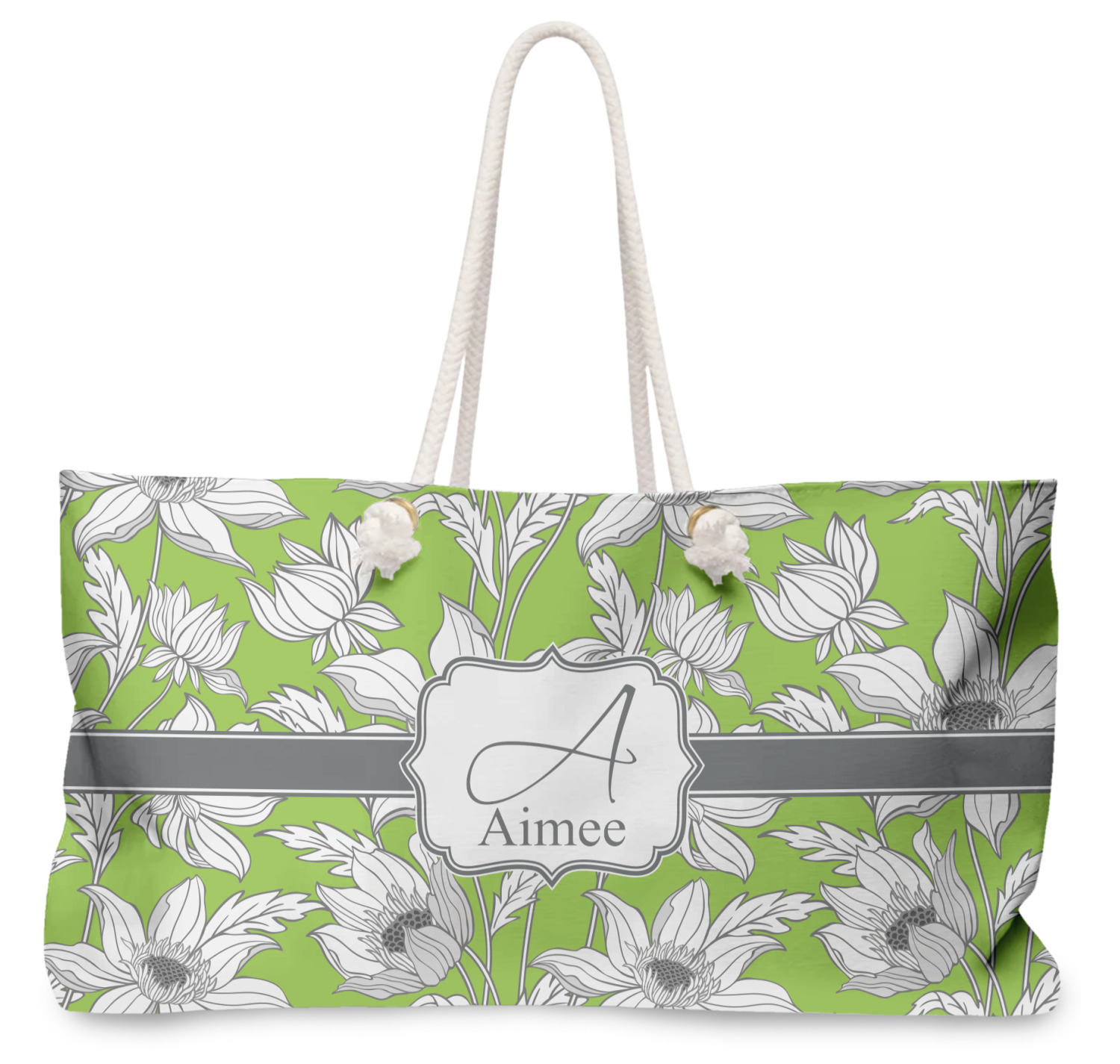 These weekender totes can be customized front and back. The totes are full all over print - so the choice of how background are endless - from beautiful floral or leaf patterns to geometrics or some classic Van Gogh artwork - the possibilities are endless. The totes can also be decorated with photos and logos.
