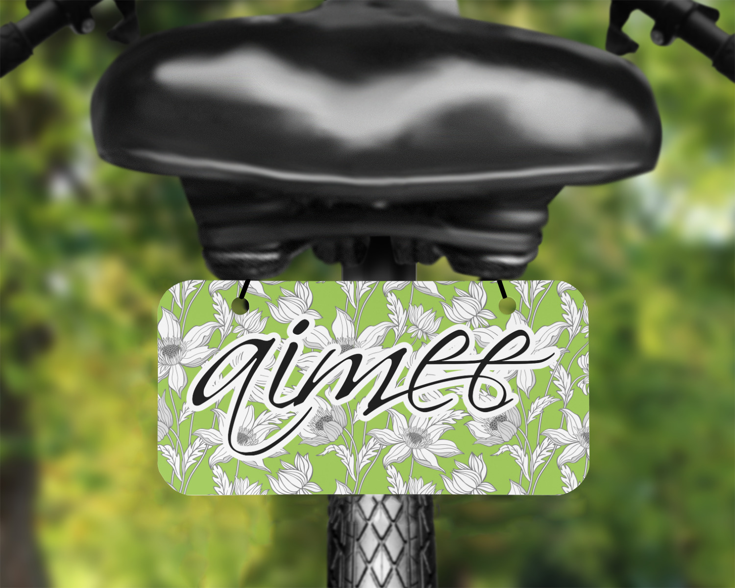 Beautify the exterior of your scooter, golf cart, bicycle or children's motorized car with a personalized, mini license plate! These plates also serve as extraordinary pieces of home decor; try implementing our mini plates as door signs or as wall decals! The options are limitless.