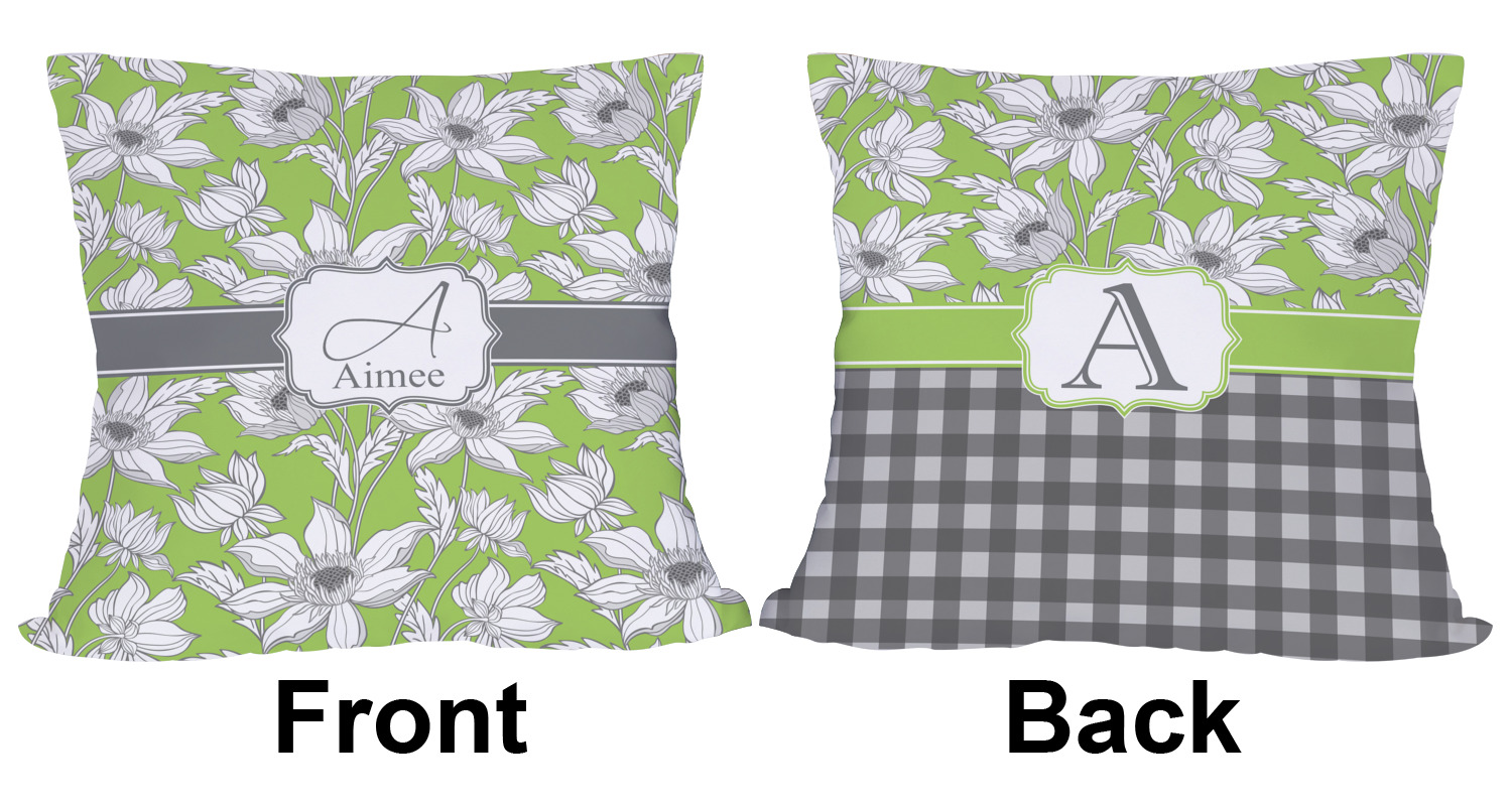 Our outdoor pillows are double sided, and can be customized and personalized in any way you want. You can have two looks with one pillow, where each side is completely different, or you can use a coordinating design - where one side complements the other or you can have them exactly the same - the choice is yours.