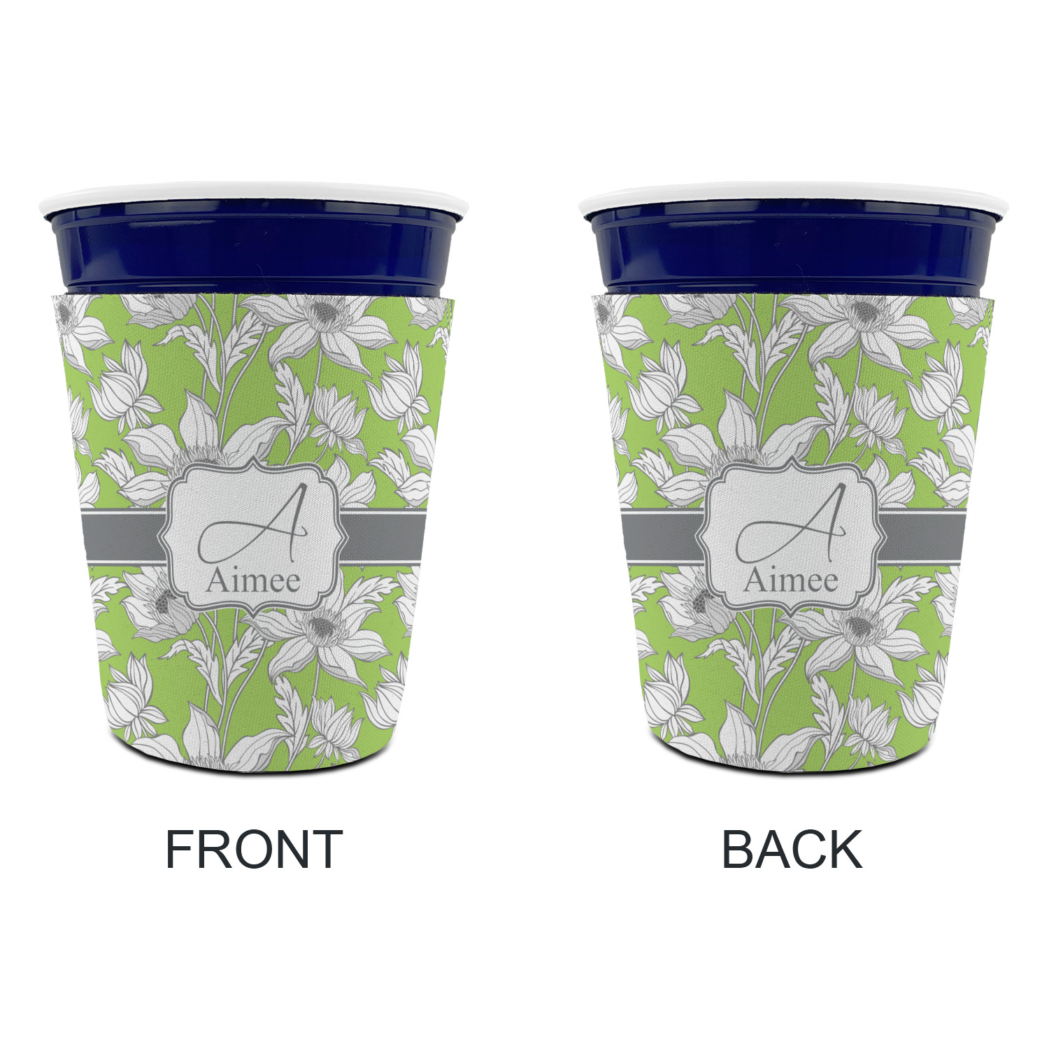 Made from neoprene with a polyester outer fabric and sewn seams, these premium quality party cup sleeves are very durable and will hold up to heavy use. They are available in 2 styles - with a bottom or just a sleeve to go around the outside of the tapered cup. The sleeve covers are about 4" tall and cover about 90% of the classic 16 oz. Solo cup.