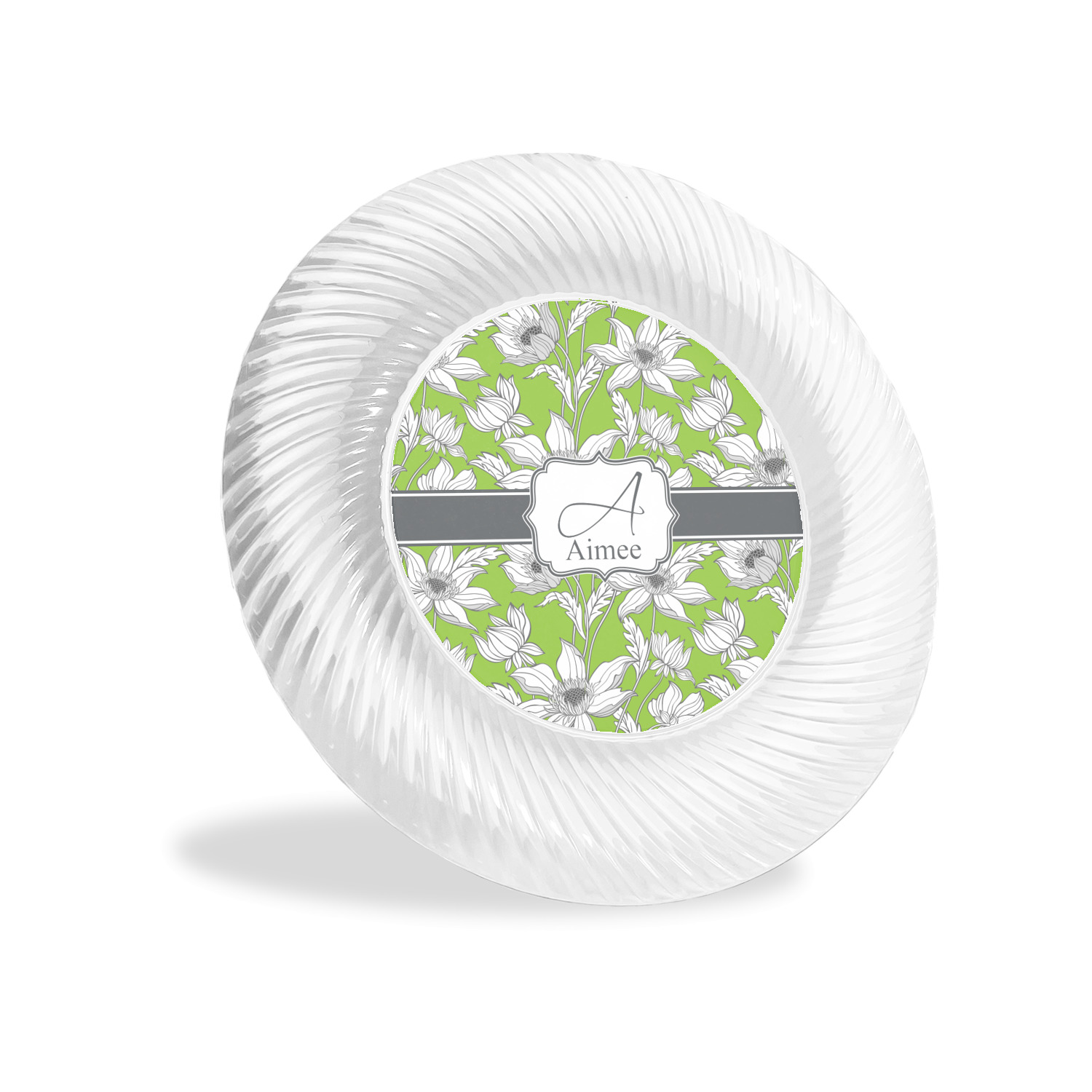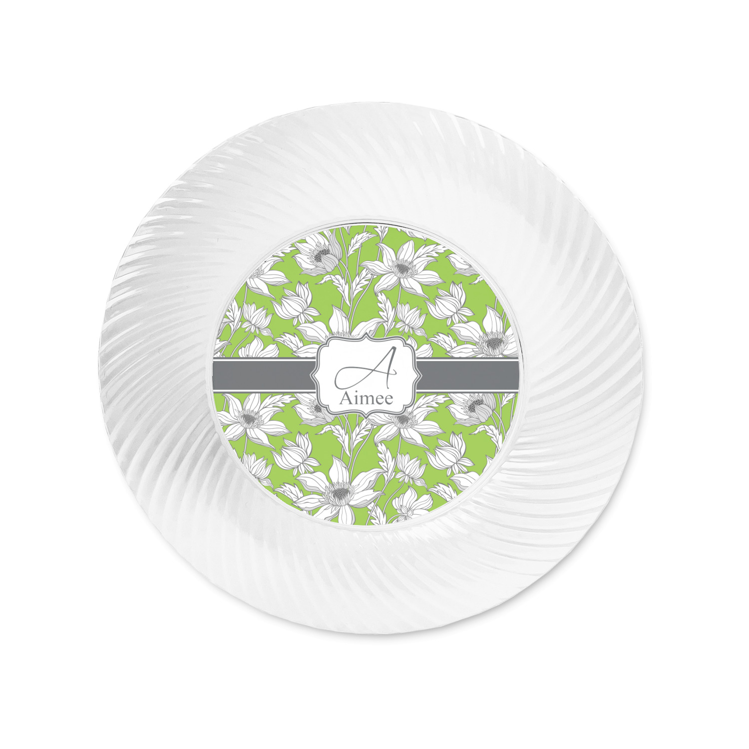 Made from a beautiful clear plastic plate as a base, your design is printed to the underside of the plate. The outside of the plate has a classic swirl texture to it for a high quality look and feel.