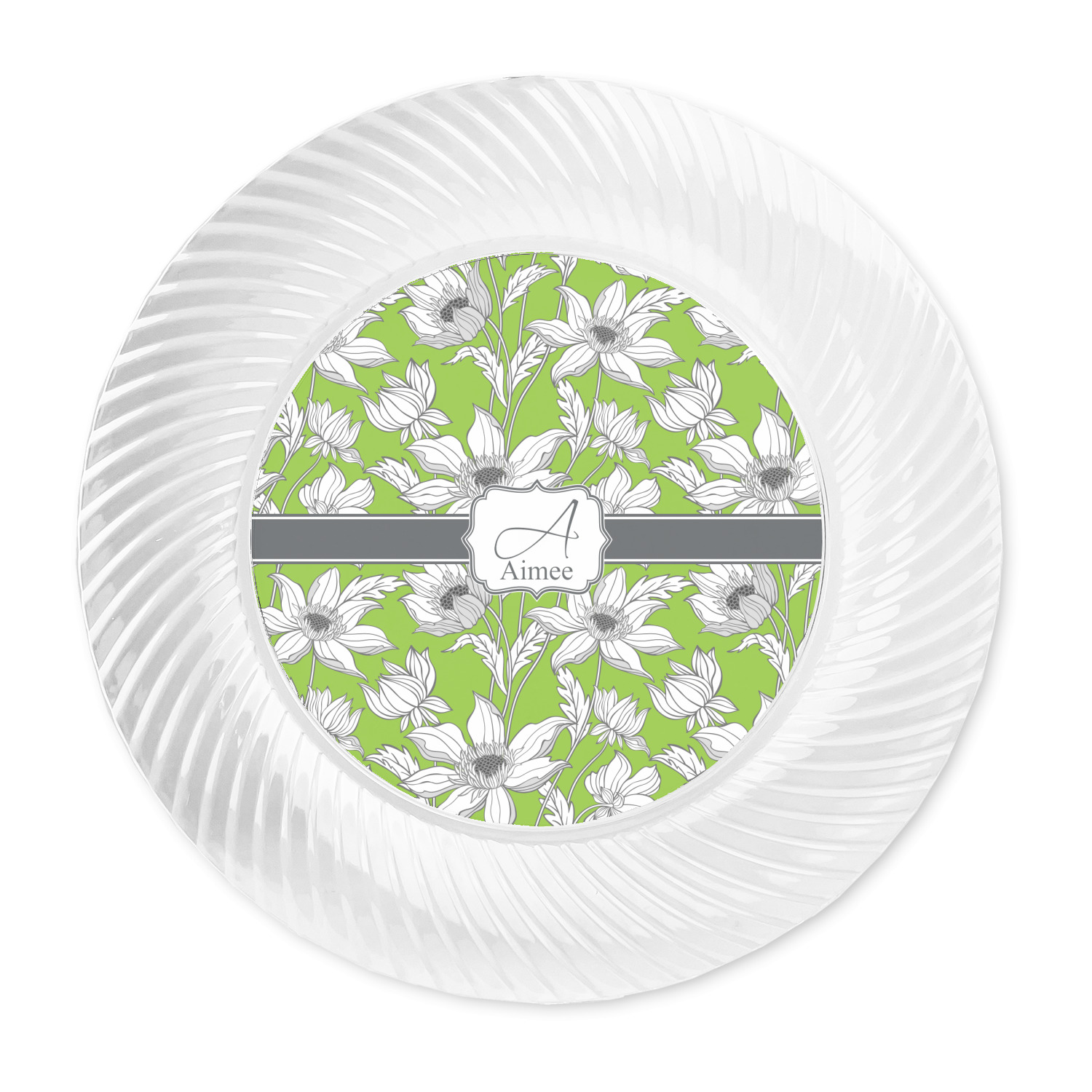Made from a beautiful clear plastic plate as a base, your design is printed to the underside of the plate. The outside of these disposable plates has a classic swirl texture to it for a high quality look and feel.
