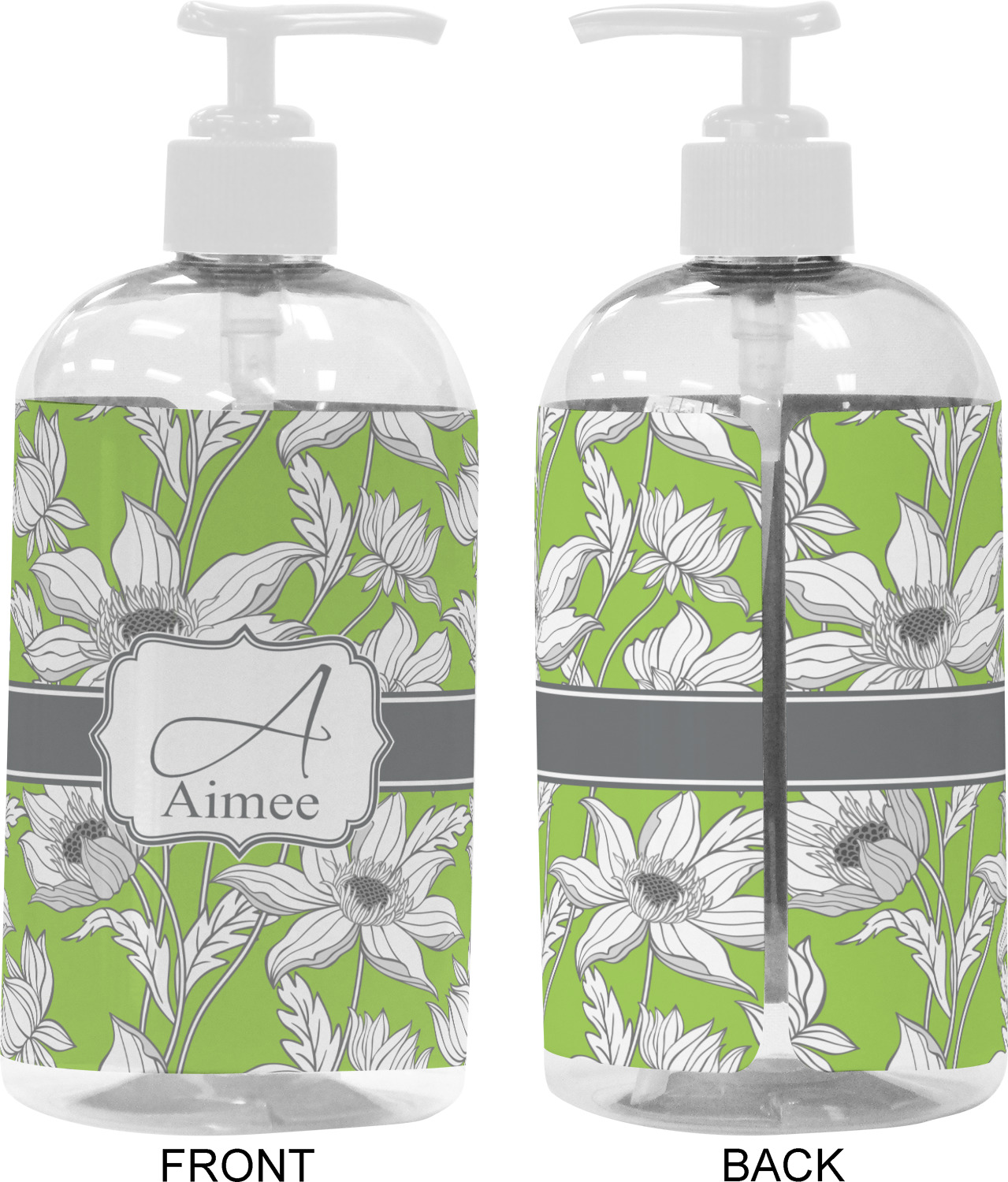 We adhere and wrap your custom printed design around the clear plastic bottle; there is a slight gap at the back for you to see the liquid level. Your design is printed on high gloss vinyl with eco-solvent inks and completely waterproof and will not fade or deteriorate over time. The vinyl is machine cut and adhered by hand to the clear plastic bottle.