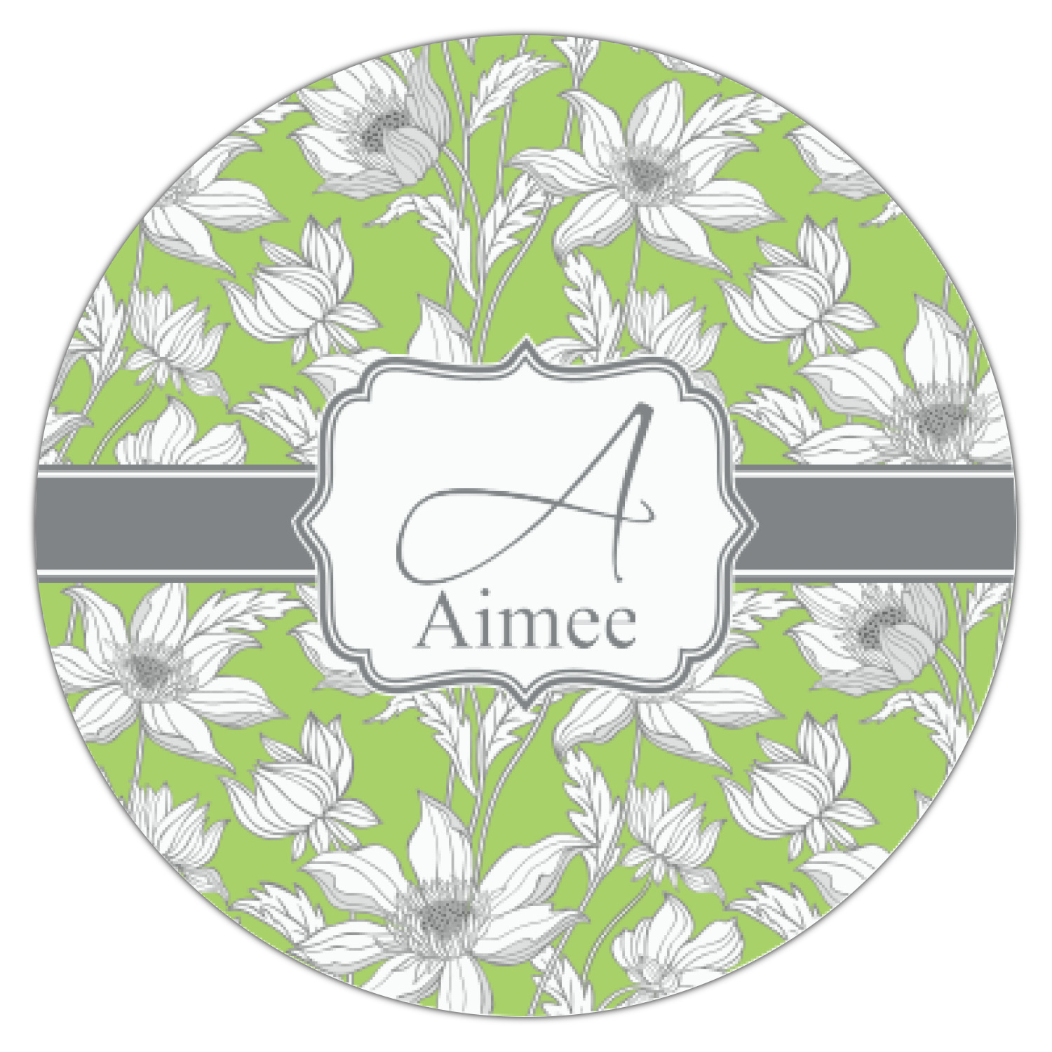 Sketches of long stem white daisies outlined in gray spring to life up against a green background. A white trimmed gray ribbon coordinates with a decorative label to showcase the personalization of your choice.