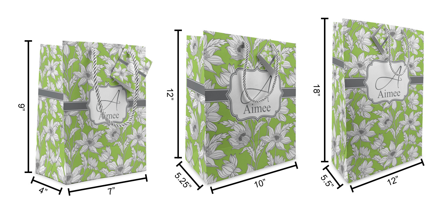 These custom gift bags come in your choice of 3 sizes. Their dimensions are below: