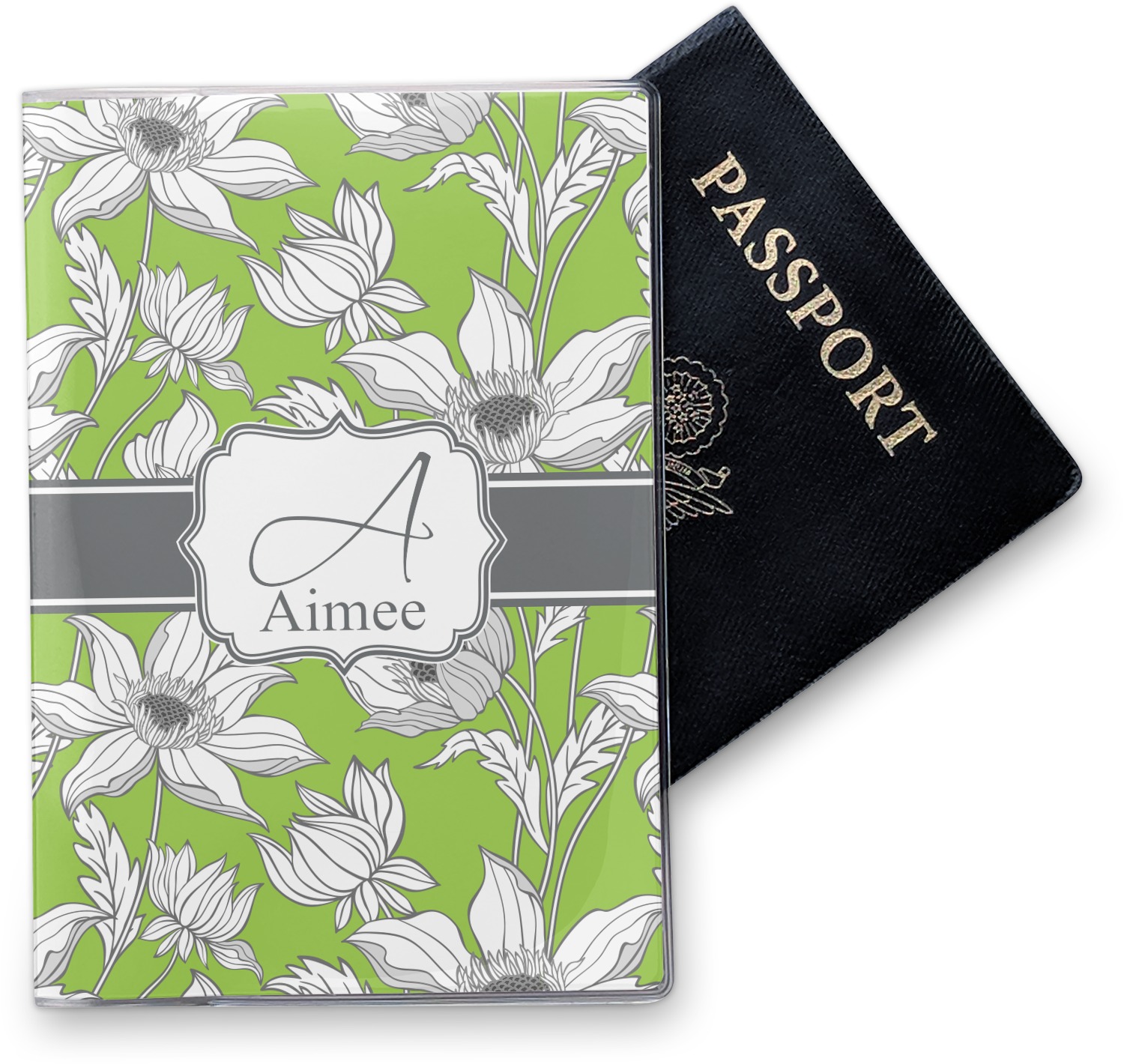 This cover is made of a sturdy clear vinyl with a personalized vinyl insert inside. There is a large and a small pocket on either side to hold the covers of your passport easily and firmly. The passport holder is approximately 7.5" x 5.25", the perfect size to snugly fit your passport. This slim cover is the perfect way to protect your passport without being one more bulky item you have to carry.