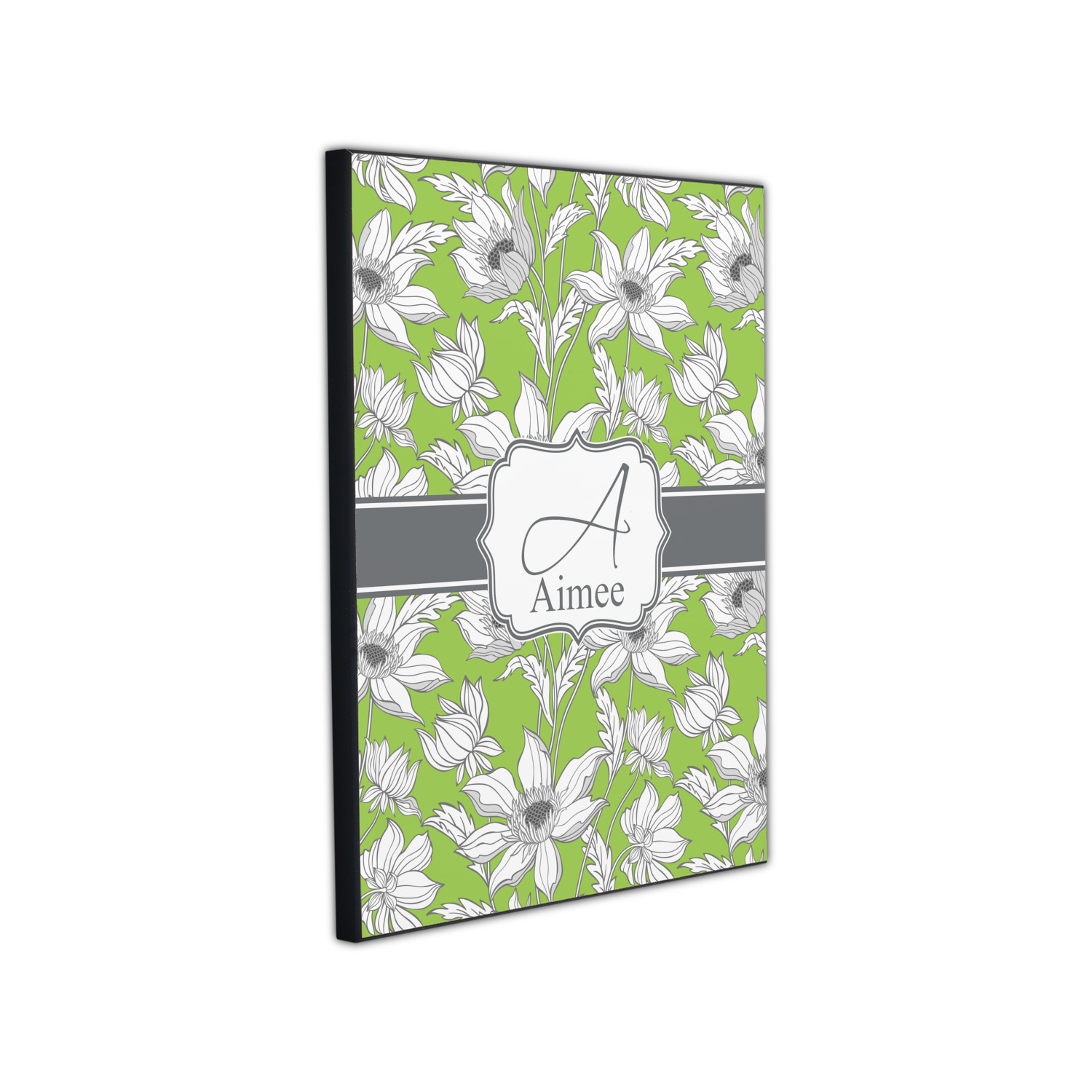 Sketches of long stem white daisies outlined in gray spring to life up against a green background. A white trimmed gray ribbon coordinates with a decorative label to showcase the personalization of your choice.