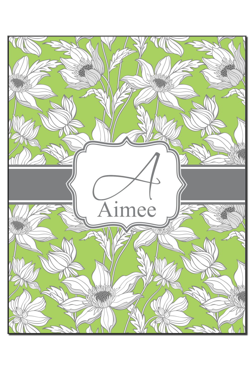 Sketches of long stem white daisies outlined in gray spring to life up against a green background. A white trimmed gray ribbon coordinates with a decorative label to showcase the personalization of your choice.