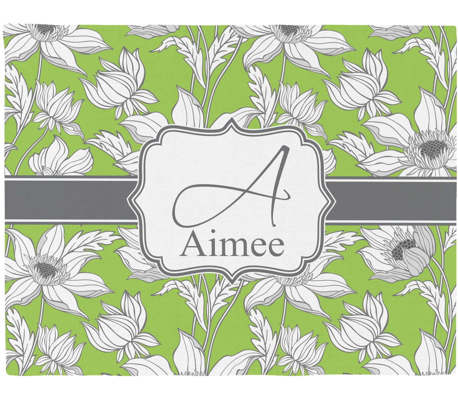 Each of our table mats are a poly twill material with woven burlap detailing. This creates a soft, quality placemat for us to fully print your personalized design across. The woven twill also adds a wrinkle-free surface to set your table! Each customizable placemat is a rectangle shape measuring at approximately 13 x 18 and printed here in the USA.