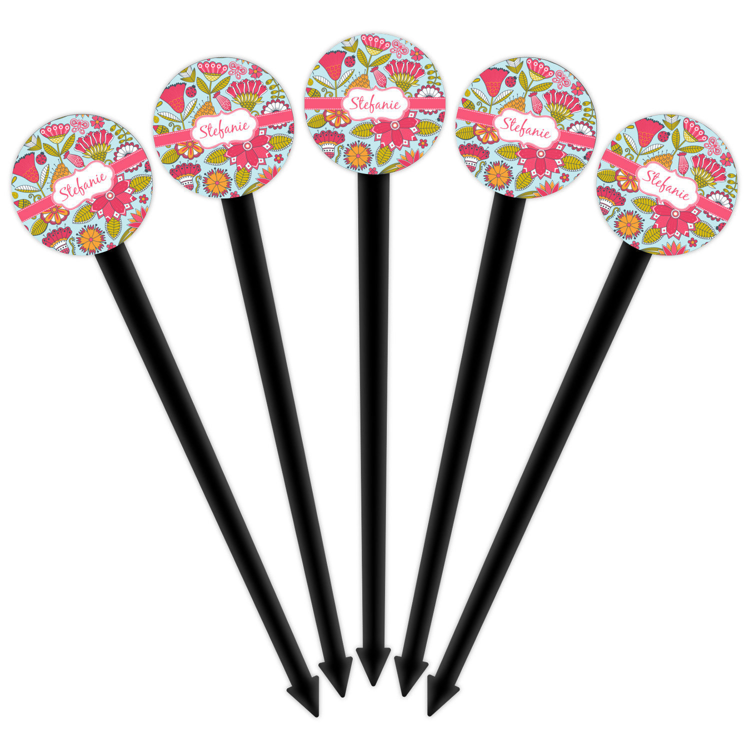 Our plastic cocktail picks have a round disc on top that is printed in full color with your event theme, colors, your logo, your photo, names, initials, monograms etc.