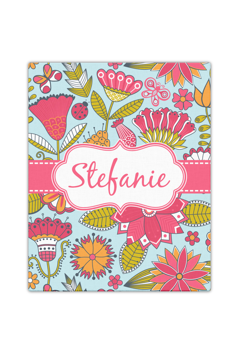 Be bold and modern with this Wild Flower design from the Garden Collection. This pattern makes a statement with a floral design of pinks, greens and oranges. Little ladybugs and bright butterflies add to the pattern's whimsy. The entire design pops on a background of light blue.