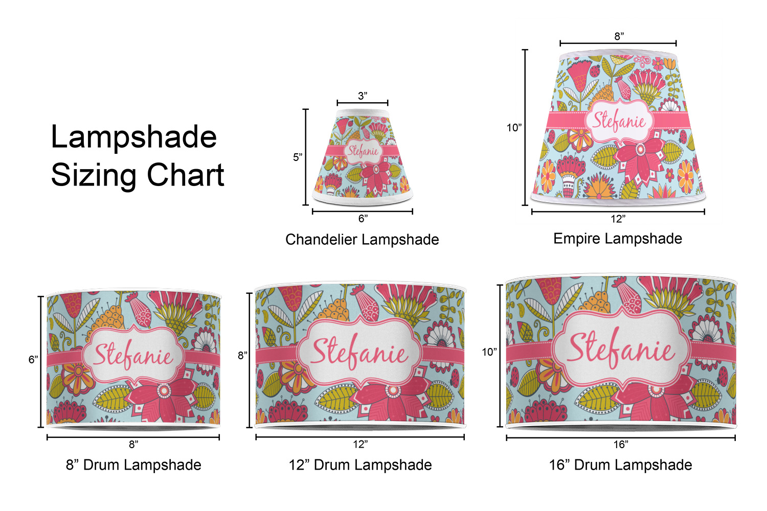 Our personalized mini lamp shades will look fantastic on any light with candelabra bulbs such as candle lamps or wall sconces. They will even look amazing as a set on a chandelier! They may be small in size, but they will make a big splash in your décor and are a great way to freshen up the look of a room!