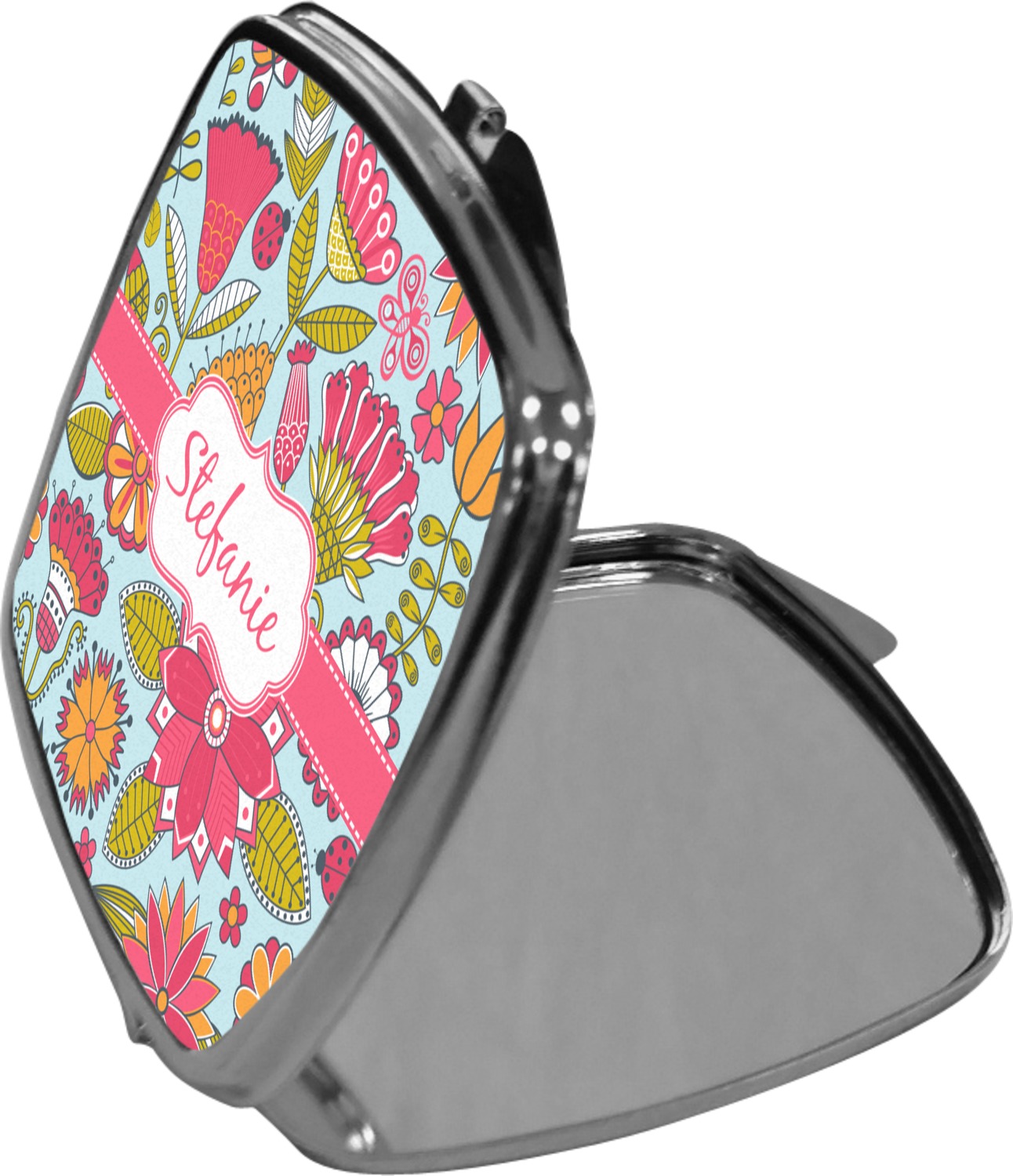 Every woman needs a compact mirror in her purse. Our personalized compact mirrors make a great bridesmaid gift or a mother's day gift, especially when you combine it with our personalized makeup bags. Get both in the same design or a coordinating design and have them both personalized.