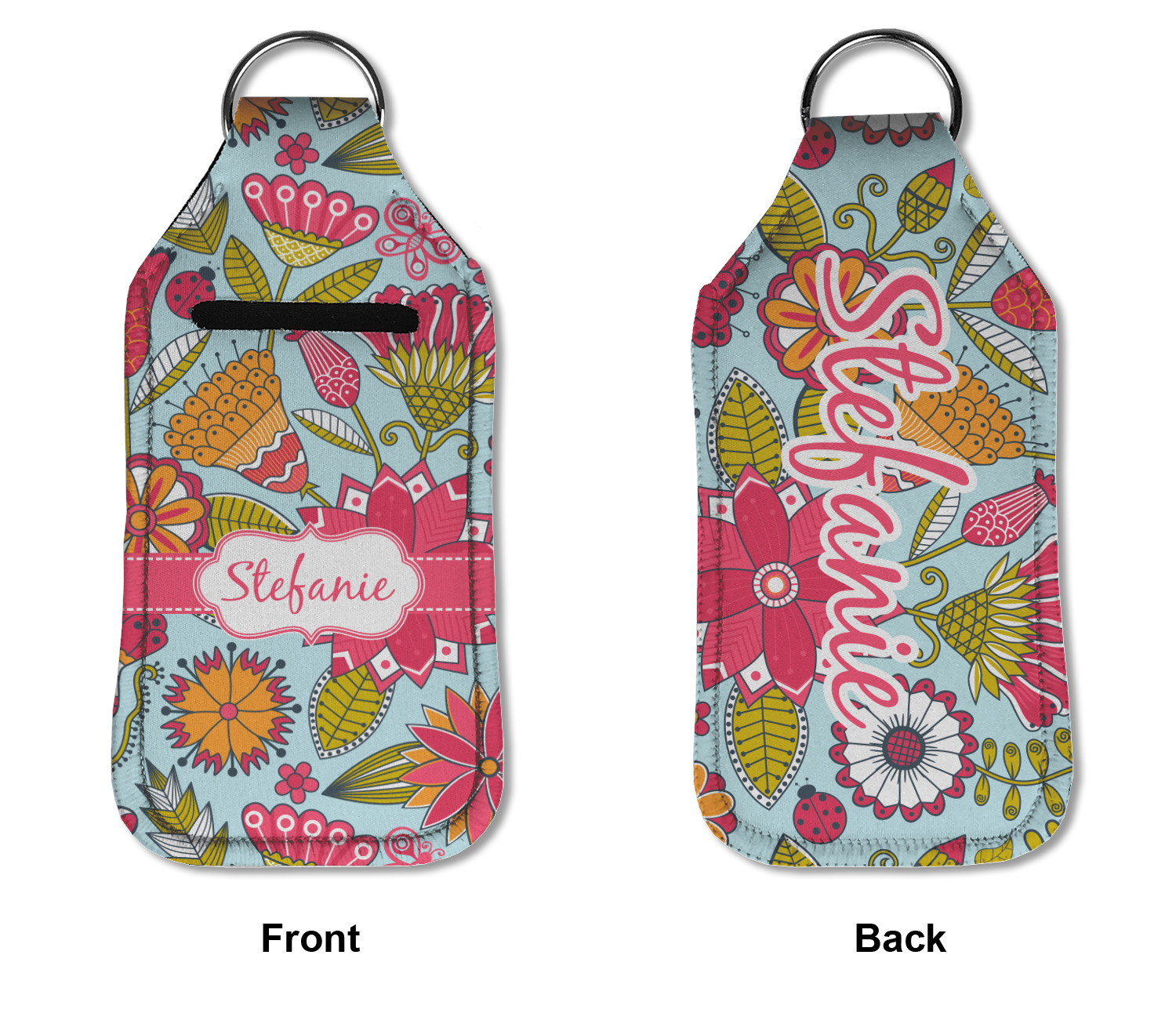 Each hand sanitizer holder comes with its own empty travel-sized, refillable hand sanitizer sure to fit snug in your customized sanitizer case! Our hand sanitizer cases are a durable, yet soft neoprene material sure to last any daily activities or travel agenda. Customize and personalize a hand sanitizer bottle holder with one of our two sizes - small (4.25" x 2.25") or large (5.5" x 2.5"). Each travel sanitizer holder comes with a keyring for attachment on bags, keys, or more!
