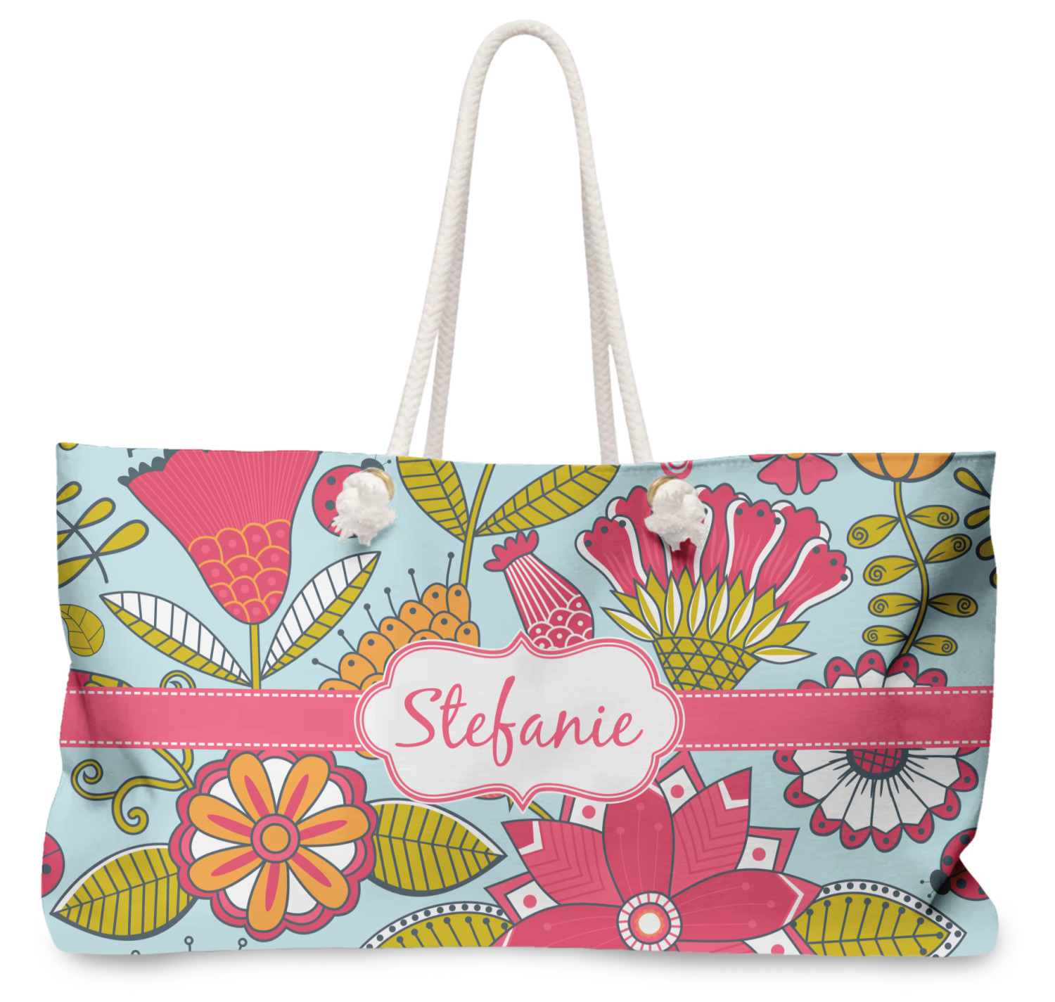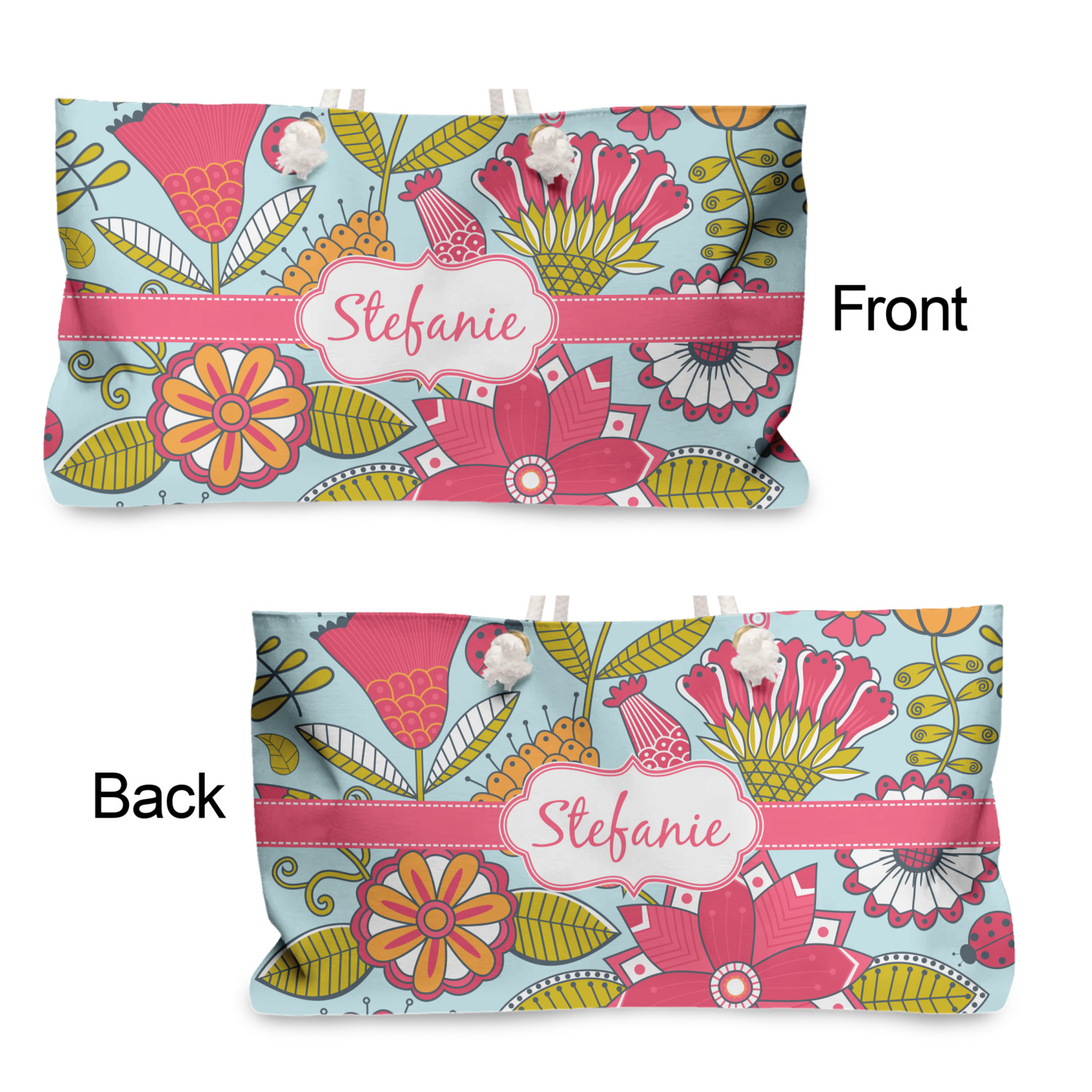 These weekender totes can be customized front and back. The totes are full all over print - so the choice of how background are endless - from beautiful floral or leaf patterns to geometrics or some classic Van Gogh artwork - the possibilities are endless. The totes can also be decorated with photos and logos.