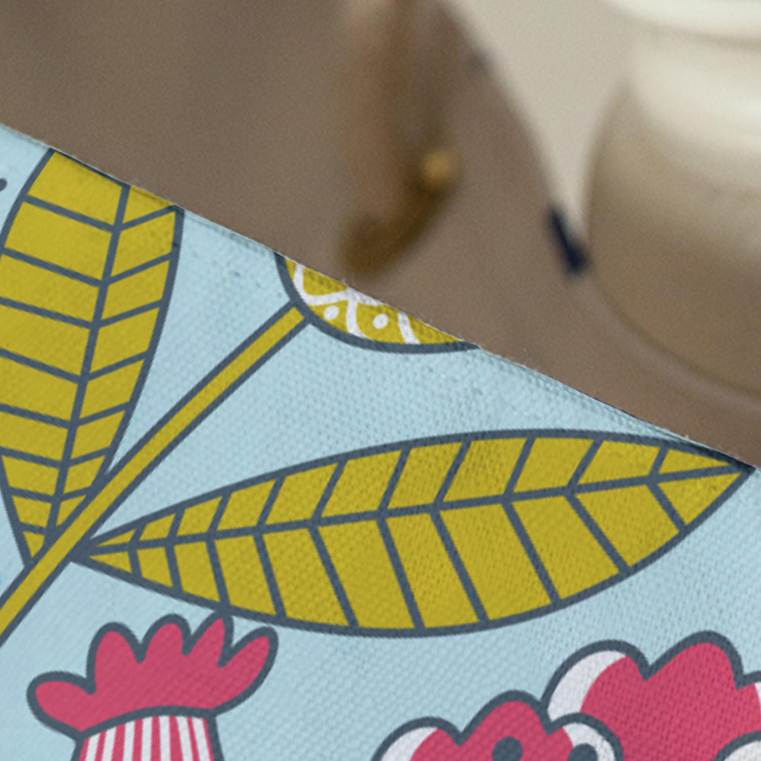 Be bold and modern with this Wild Flower design from the Garden Collection. This pattern makes a statement with a floral design of pinks, greens and oranges. Little ladybugs and bright butterflies add to the pattern's whimsy. The entire design pops on a background of light blue.