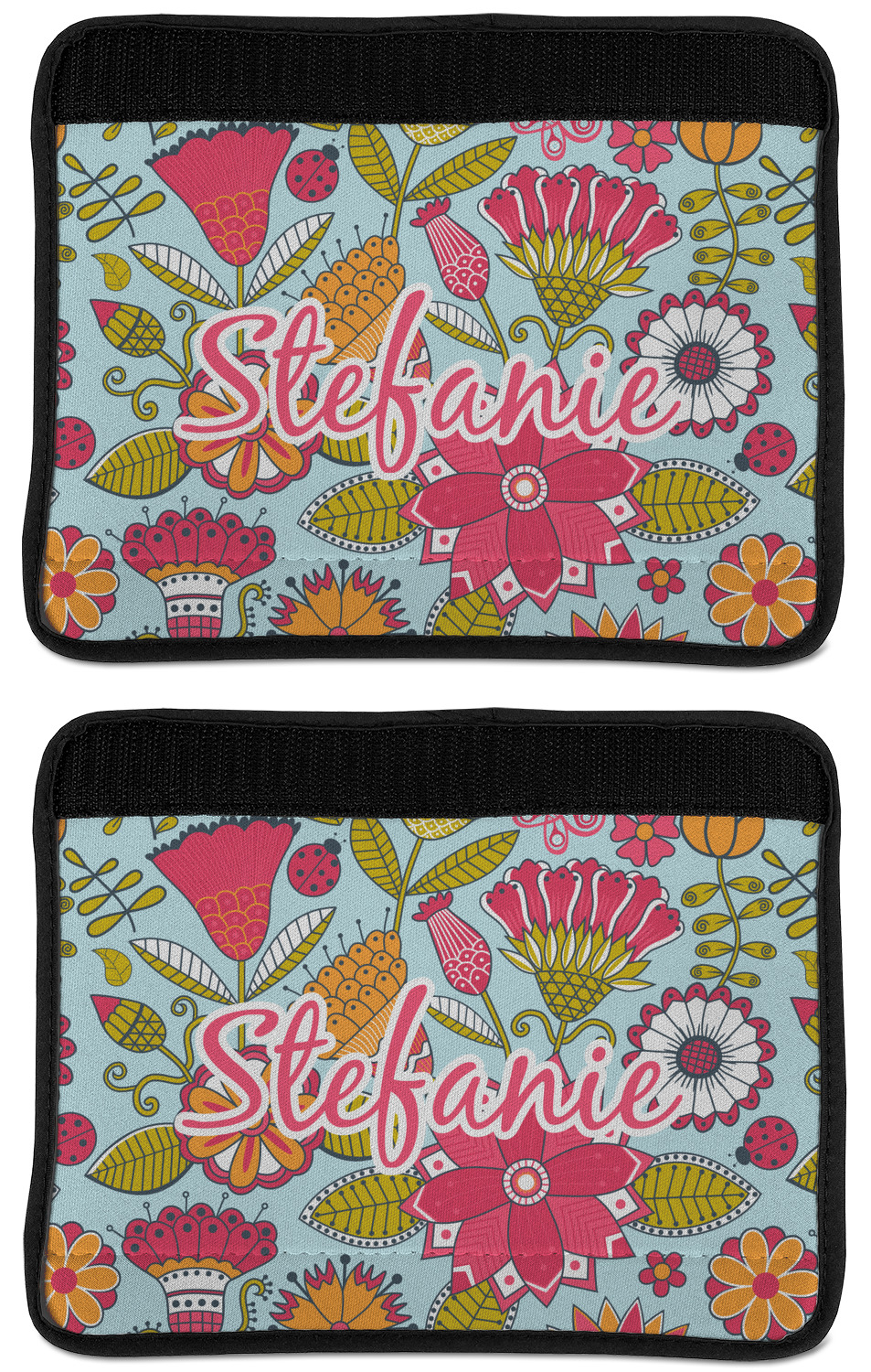 Made from neoprene, our seat belt strap covers wrap around the belt itself and have a Velcro tab for easy attachment and closure. The belt's edges are trimmed with a black polyester for a secure finish. Each cover is 9.5 by 7 inches when open and 9.5 by 2.5 inches when closed. We print your personalized design on the face of the seat belt pad.