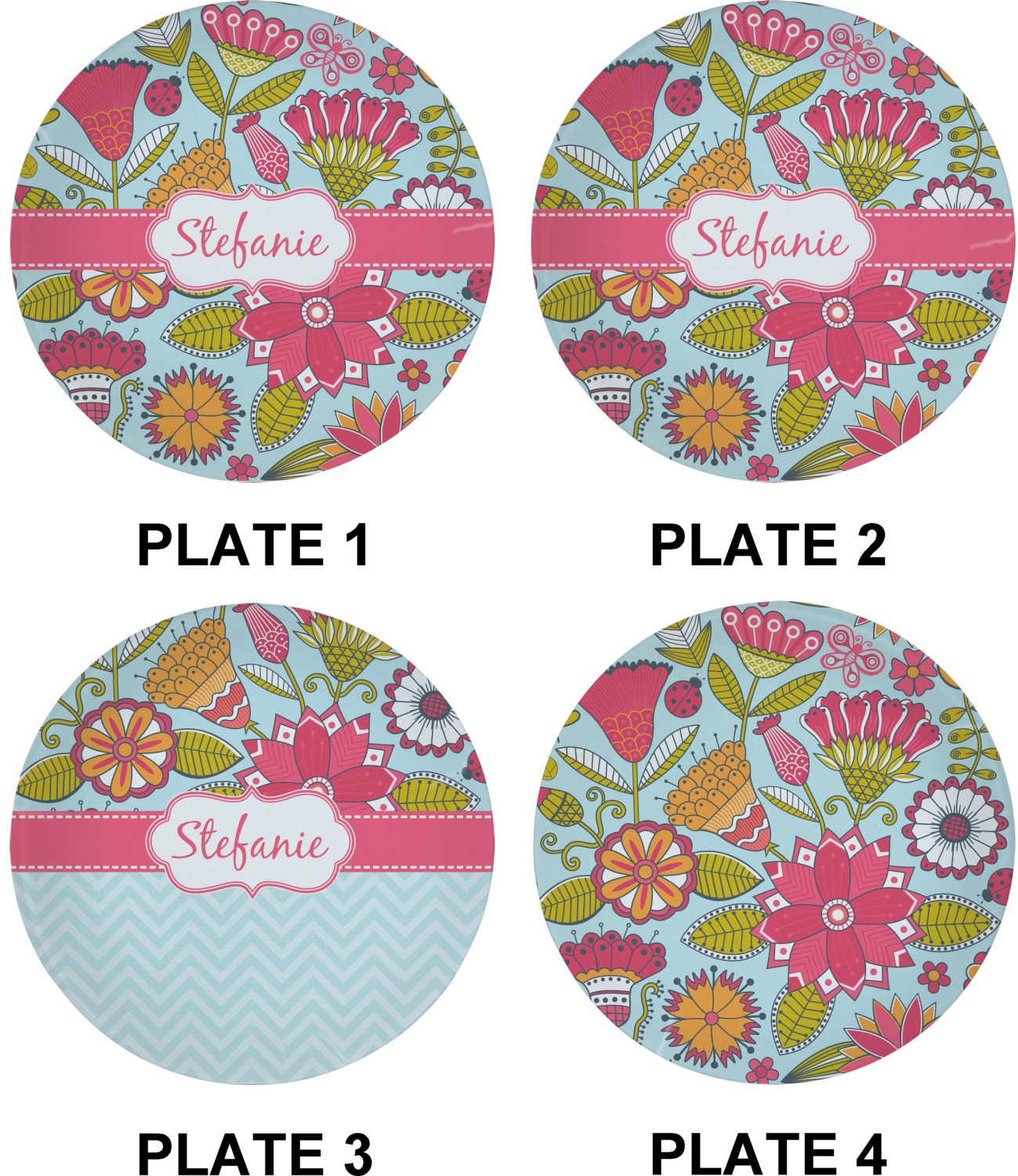 With a of designs and patterns, these plates are completely customizable. Choose a foodie design, complete with red-hot chili peppers, or go classic with stripes or plaid. Include your monogram or family name to make sure these plates never get lost at parties!