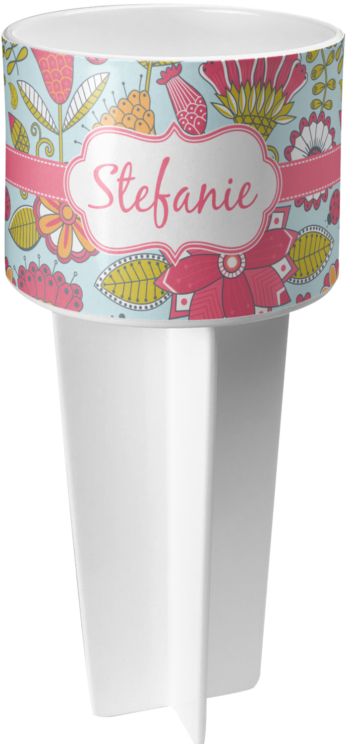 This cup holder has a large stake at its bottom that anchors it to the sand or ground below, while the cup holder rests above the stake. The entire drink holder is made of durable plastic and displays your customization around the cup holder portion. We sell these personalized beach spikers in two different colors: black and white.