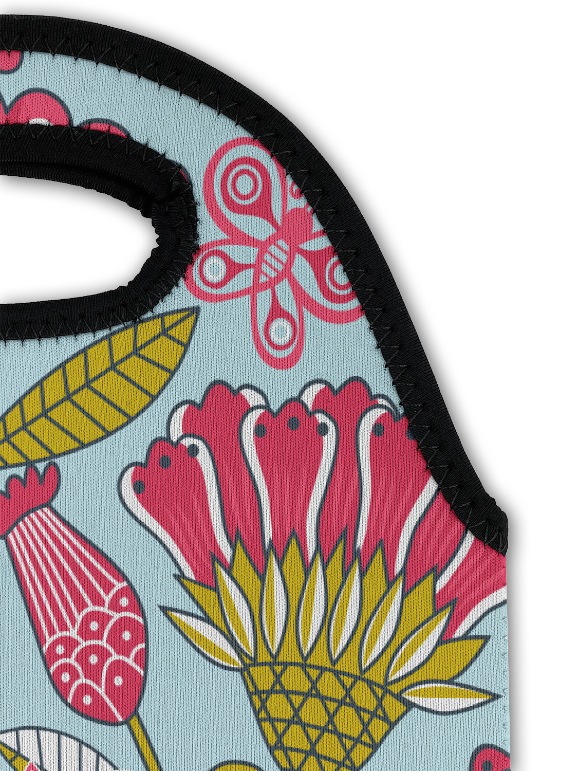 Be bold and modern with this Wild Flower design from the Garden Collection. This pattern makes a statement with a floral design of pinks, greens and oranges. Little ladybugs and bright butterflies add to the pattern's whimsy. The entire design pops on a background of light blue.