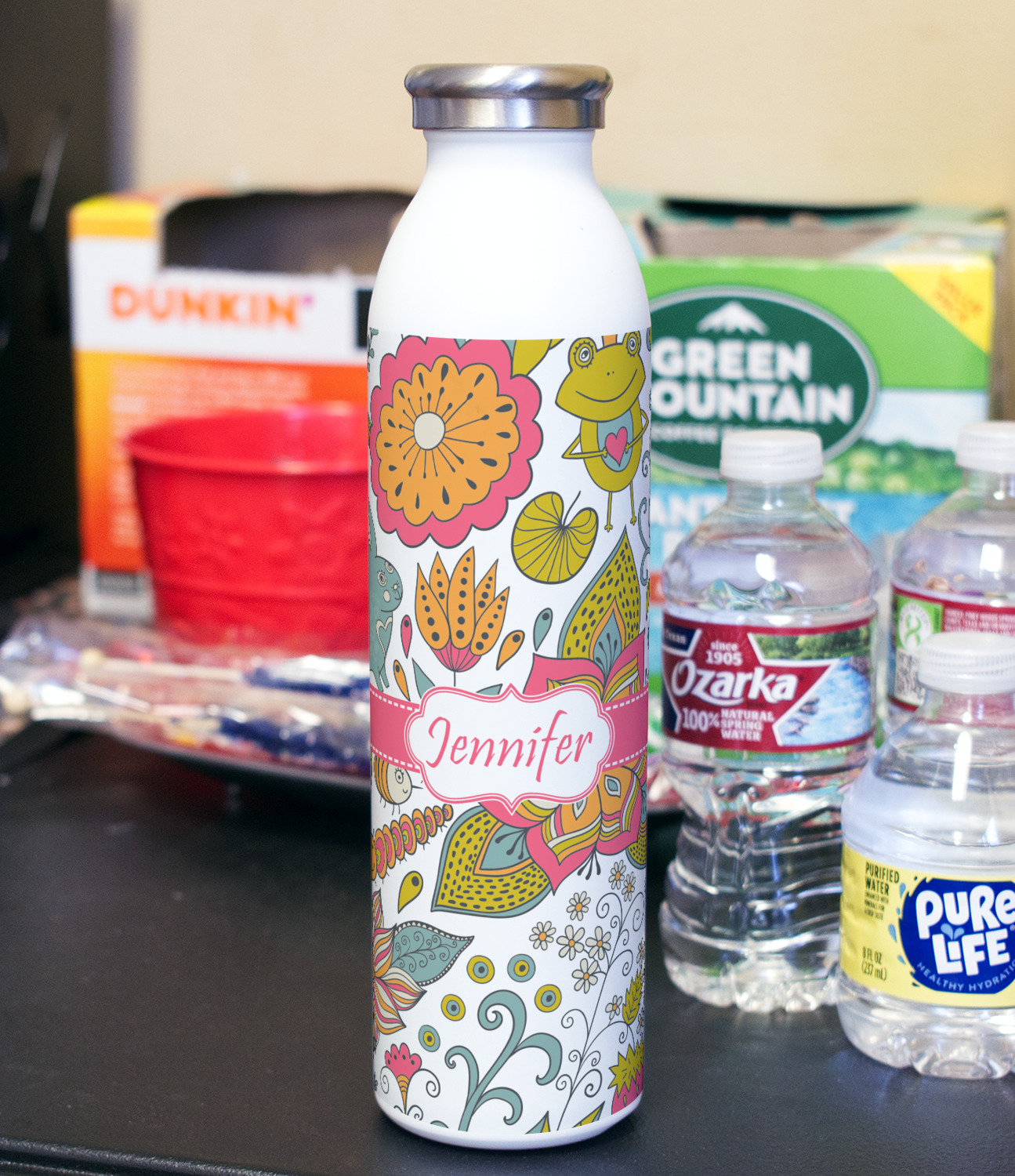 With the double wall insulated construction this bottle will keep drinks cold for 24 hours and hot for 12 hours. The large size allows for a beautiful large artwork space to allow you to make this bottle all your own.