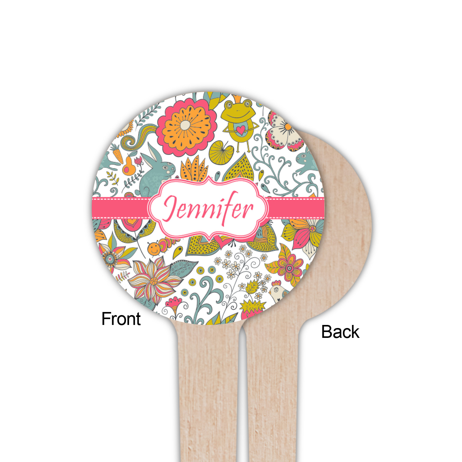 A pink ribbon with white stitching attached to a decorative white label trimmed in pink ties the entire design together. Add personalization of your choice in a coordinating color to make this pattern even more special.