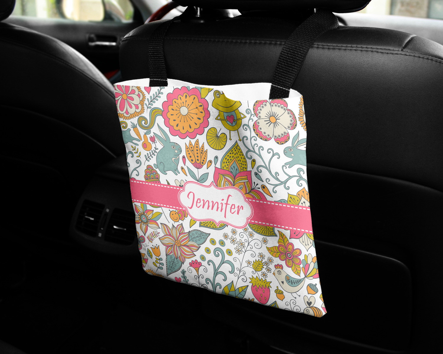 These car back seat organizers are sturdy tote-like bags, fabricated from a robust polyester, and features a single handle on the back side. The strap features an attachable velcro for easy attachment to headrests, grocery carts, car seats, and more. Simply undo the velcro, loop the strap around the headrest, reattach the velcro, and let the organizer hang from the front seat. These car organizers are the perfect means of increasing your backseat's legroom, while storing multiple items in one place for better accessibility. Each car back seat organizer measures at 10 by 10 inches, and features your personalized design printed across its front and back.