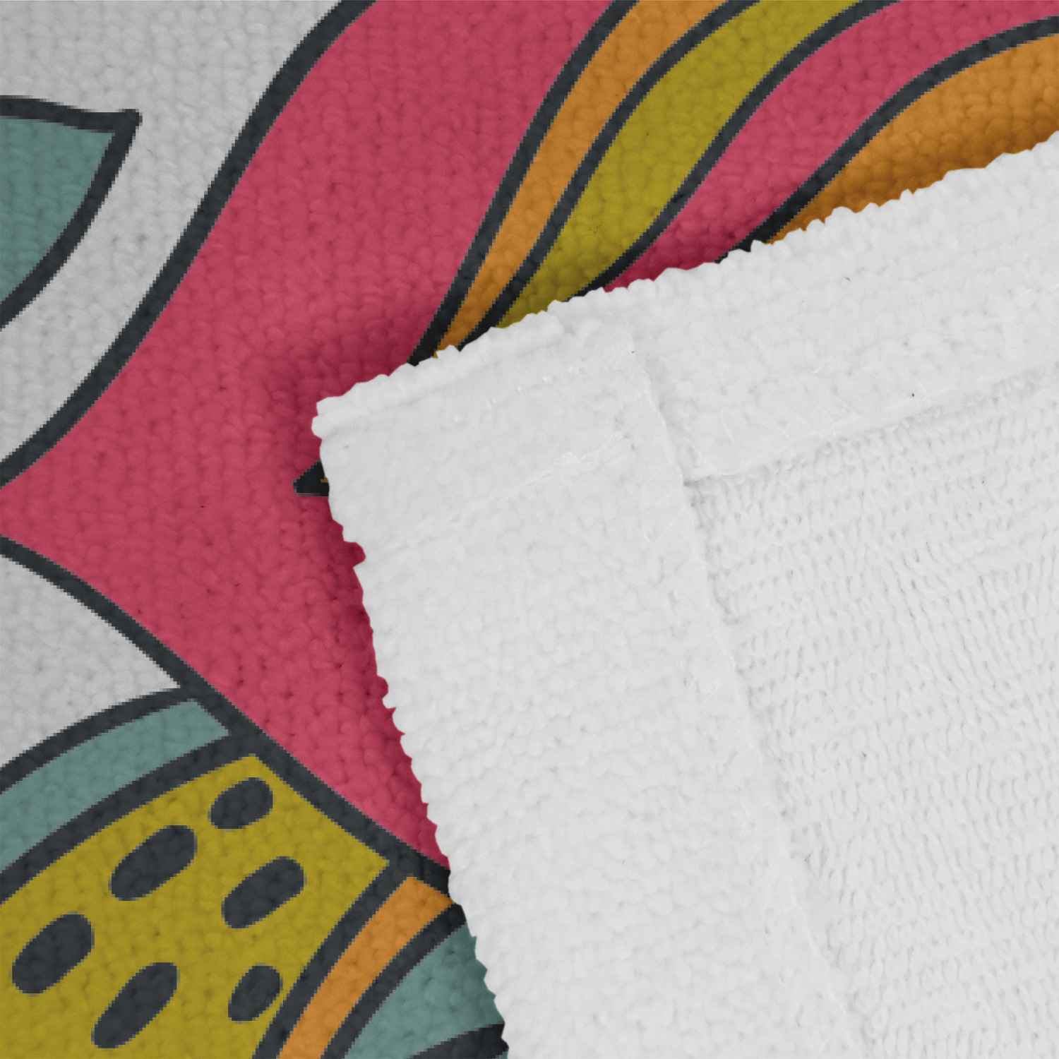 These terry loop towels are thick and plush. They may feel a little flat when you first receive them and this is because of sublimation printing - it presses down on the fibers - however, the towels will fluff up once washed & dried. Your design will be printed on the front side of the towel which is a polyester blend, while the back is 100% cotton and will be white.
