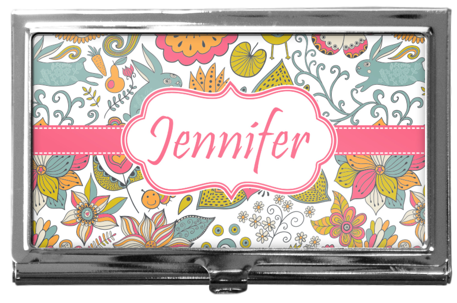 Our personalized business card holders are built from a robust, stainless steel and shaped into a sleek rectangle. At 3.75" x 2.5", and 0.25" thick, this nifty accessory holds up to 12 to 15 business cards, depending on the thickness of the cards themselves. Regardless, the skinny style makes it the perfect fit for your purse or pocket. The lid of your custom business card holder features a protruding tab to open and close your holder with a snap. To protect the mint condition of your cards, the interior of this metal business card holder is lined with a soft, felt fabric. We print your personalized design across the face of the lid.