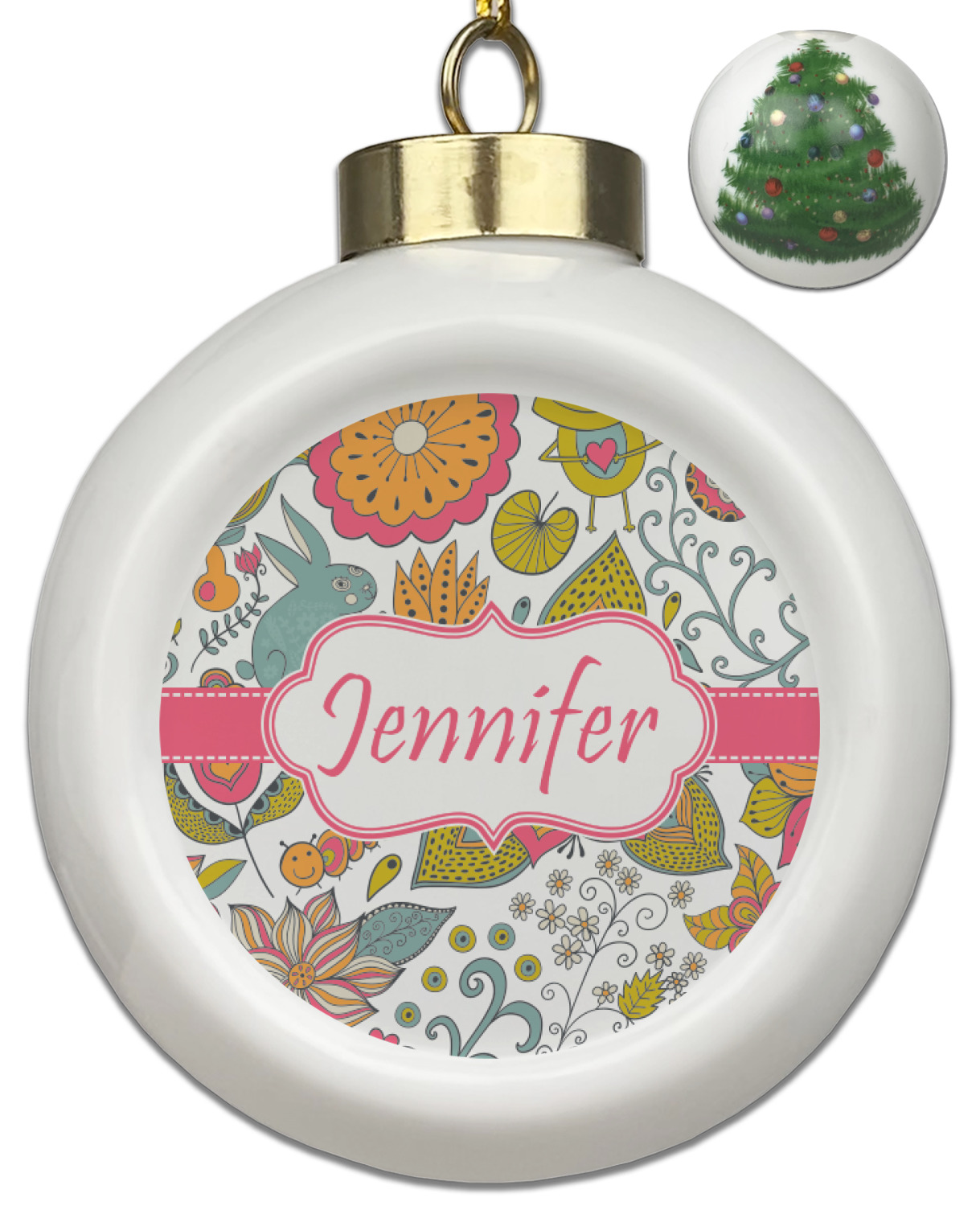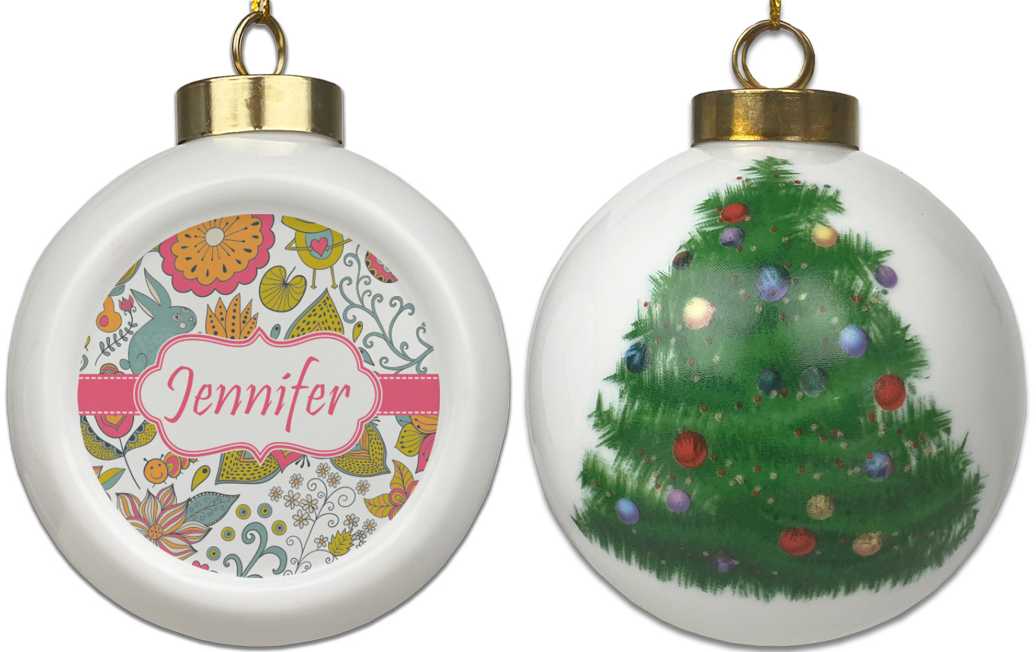 Our Christmas ornaments are a unique ceramic ball shape with a twist as it has a flat face to display your custom design! Select from one of our two design types - Christmas Tree or Poinsettia Garland - to adorn the curved back of your personal design. Each ornament measures 3H x 2.5W x 2D accompanied with a gold string accent for finishing touches to hang on your beautiful Christmas tree!