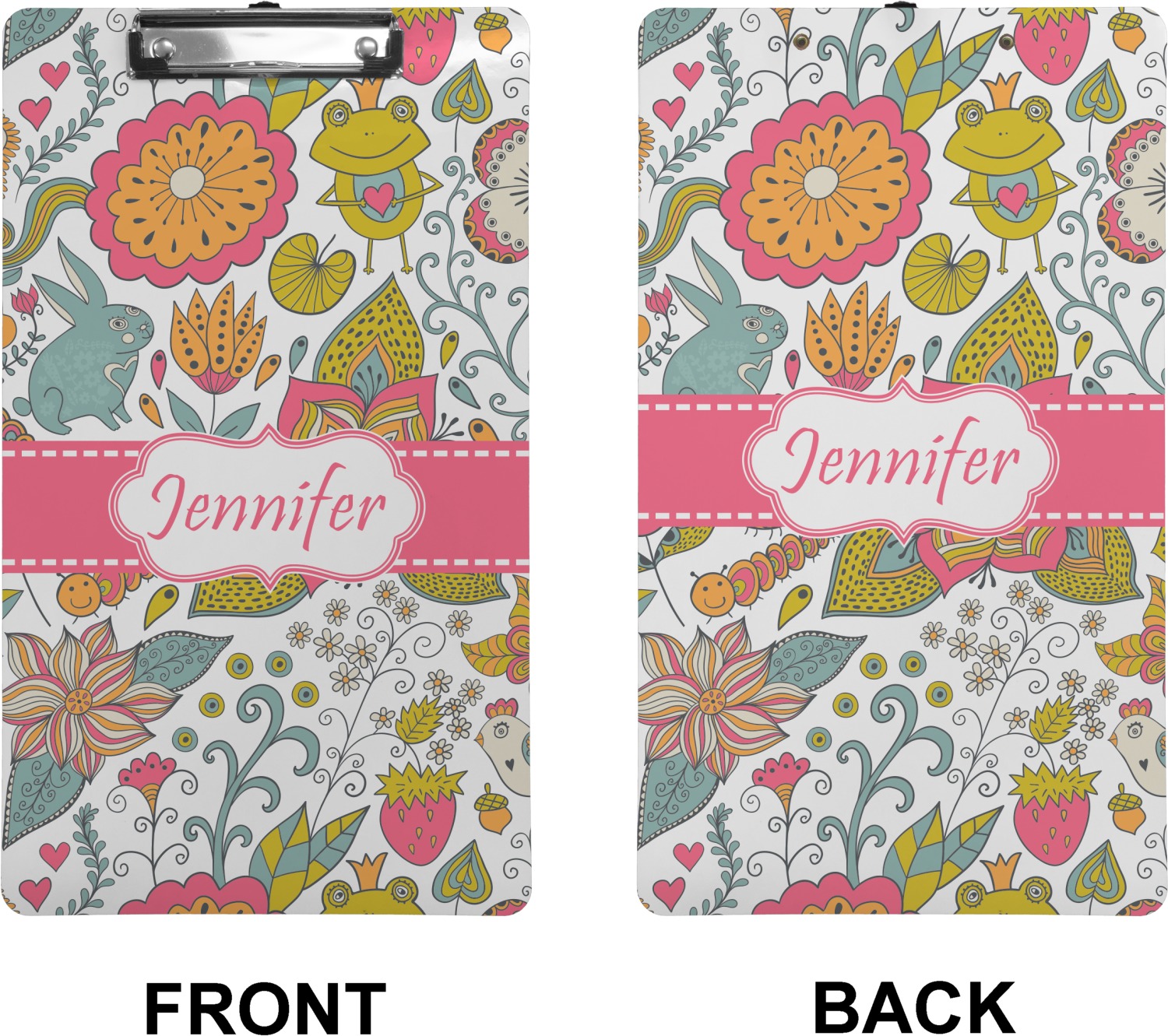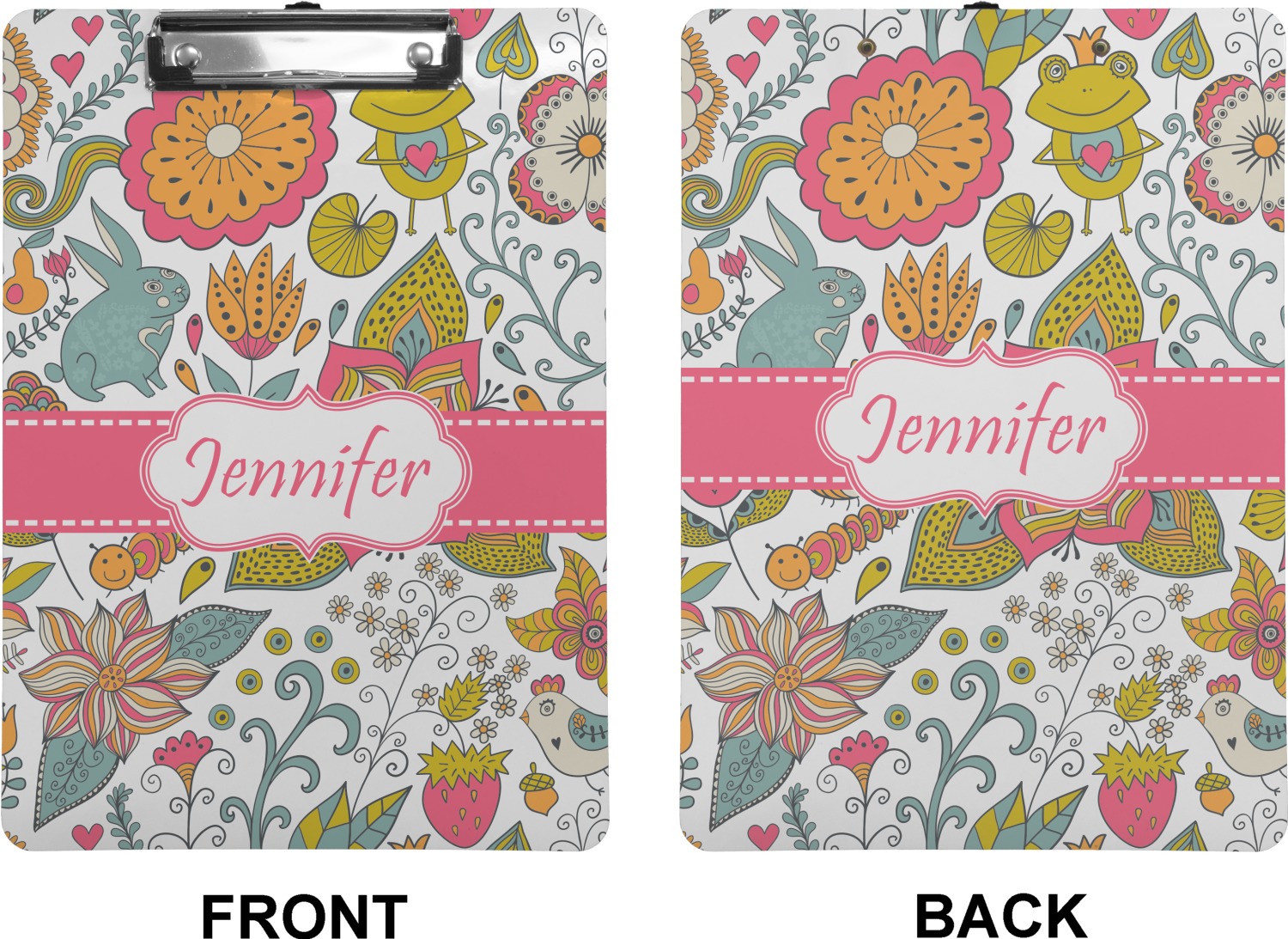 These custom clipboards are made from a strong hardboard and are coated with a glossy finish that accentuates the colors of your design. Alongside a retractable hook at its top, these decorative clipboards also feature sturdy clips to secure several sheets of paper. We sell these clipboards in two separate sizes. Our letter size measures at 12.5" L x 9" W, while our legal clipboard is approximately 15.5" L x 9" W. On both models, your personalization is printed on both sides of this clipboard and can be customized individually.
