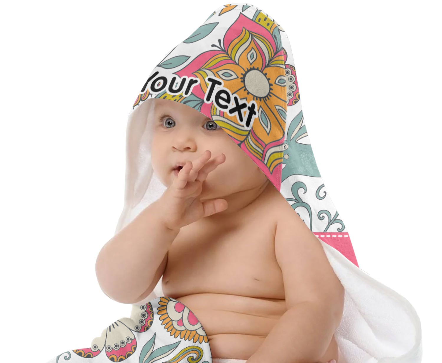 This baby towel is made with a plush microfiber velour and cotton terry. and thus will be soft and gentle against your newborn's skin, but also, very absorbent. Your customization is printed across the front & the hood, while the inside is a classy white.