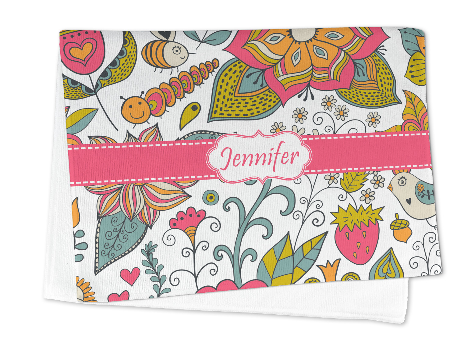 A pink ribbon with white stitching attached to a decorative white label trimmed in pink ties the entire design together. Add personalization of your choice in a coordinating color to make this pattern even more special.