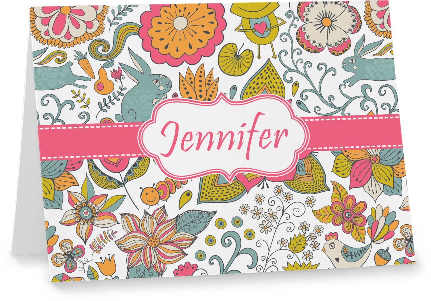 Our custom folded note cards are printed on premium 100lb. card stock and comes with white envelopes. The note card measure 5.5 by 4.25 inches and are blank on the inside for your handwritten message.