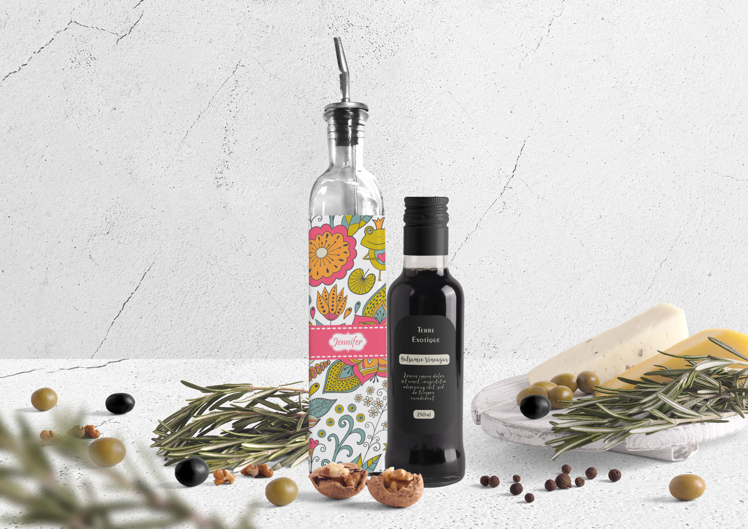 Made from recycled glass in Spain, these oil bottles have a classic, delicate look, and are accompanied by a metal spout for controlled pouring. Each bottle holds approximately 13 ounces and measures at 12 by 2 inches. We customize your glass oil bottle by applying your personalized design on the front and sides, using an adhesive. Our customizable stickers are made from high quality, gloss vinyl and are printed with waterproof, eco-solvent inks. These pieces are machine cut for accuracy and symmetry. The result is a robust, waterproof, adhesive decal that will not fade or deteriorate with time.