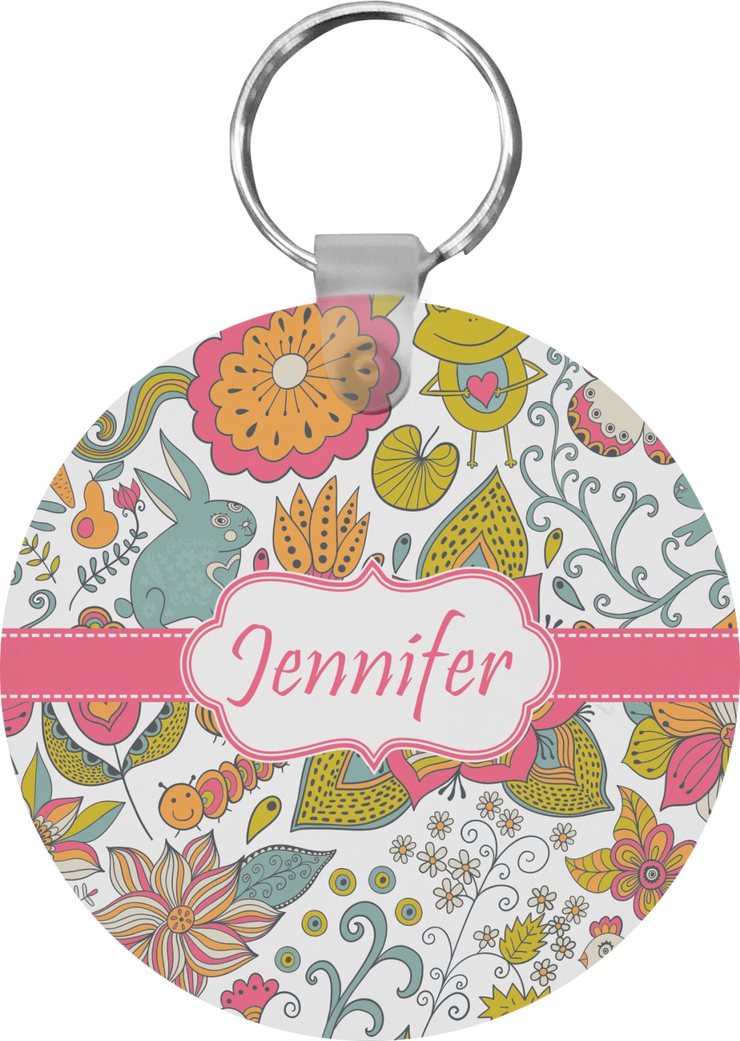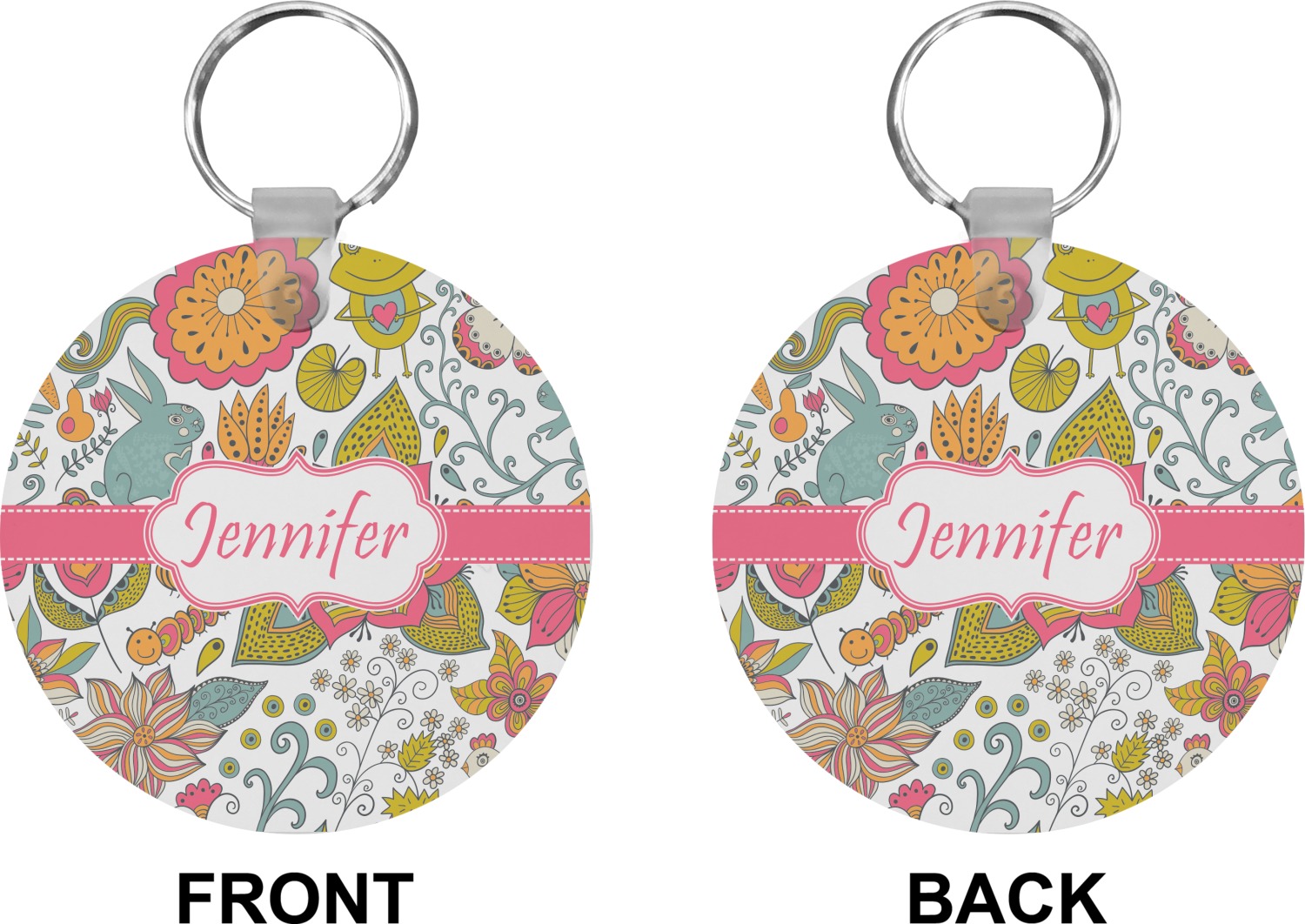 Our personalized keychains attach to the included metal, split key ring with a plastic, removable snap. Since a metal ring is included with your purchase, you have the liberty to keep your keys together on the ring, with or without your unique keychain. We offer this keychain in three different shapes: circle, heart, or diamond. We print your personalized design(s) on both sides of the key chain, and the surface has a glossy, reflective finish that only emphasizes your design. Each keychain is approximately 2.25 by 2.25 inches.