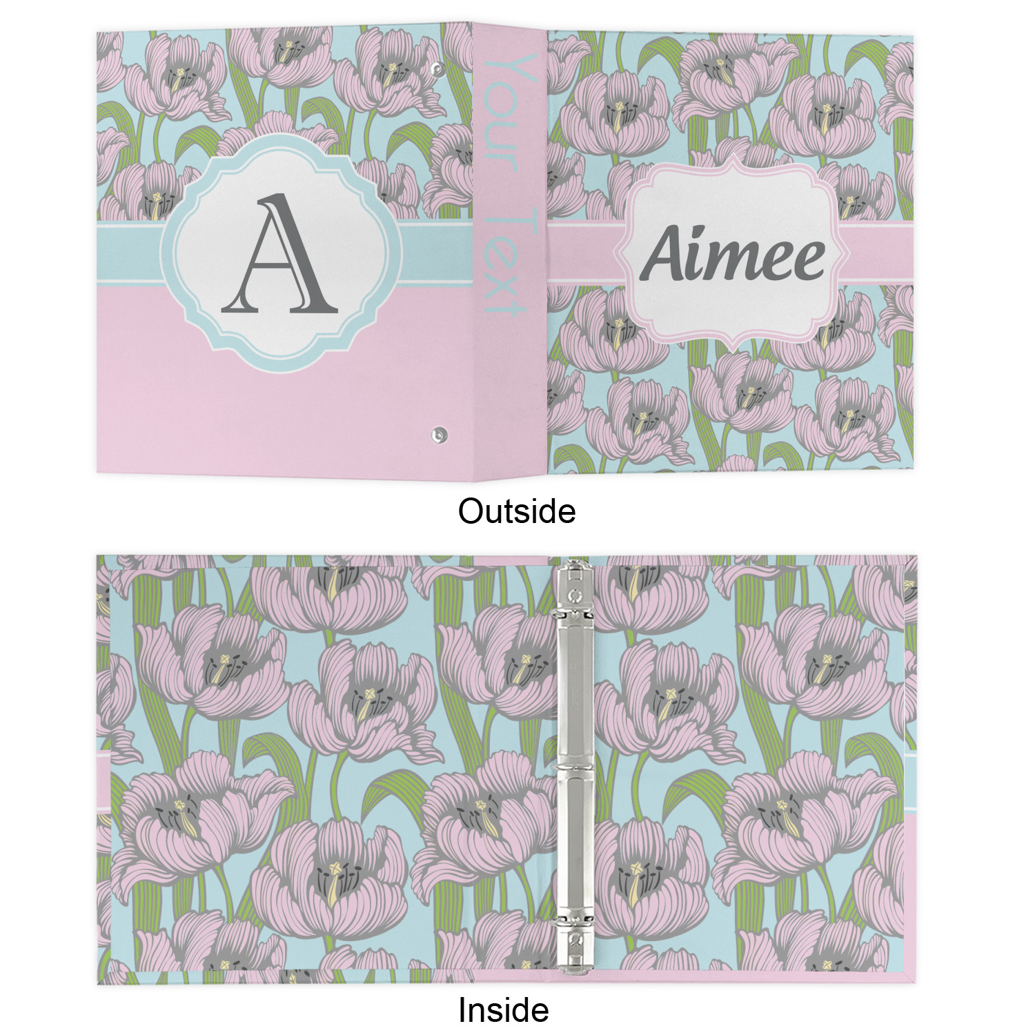 The outside is printed in 3 sections - front cover, spine and back cover - while the inside is printed in a full single print of your choice. The inside boasts a high quality nickel plated binder mechanism with a trigger opening function and is secured to the cardboard binder with posts and screws.